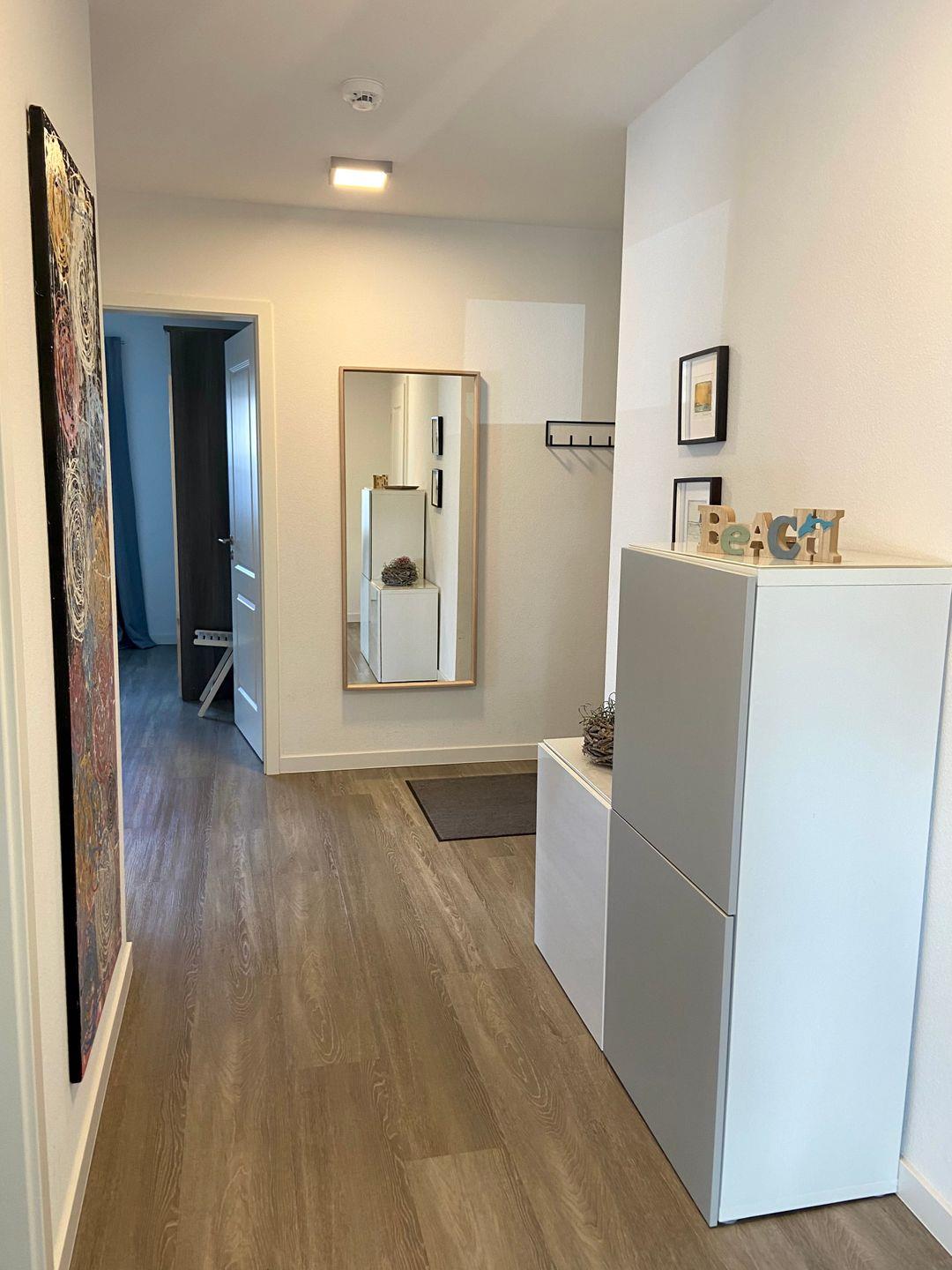 Die Wohnung bietet zeitgemäßen Standard auf 79 qm Wohnfläche für 4 Personen und jeglichen Komfort wie Fußbodenheizung, elektrische Außenjalousien in den beiden Schlafzimmern und bodentiefe Fensterelemente im Wohnzimmer für ein offenes Raumgefühl mit Gartenblick.