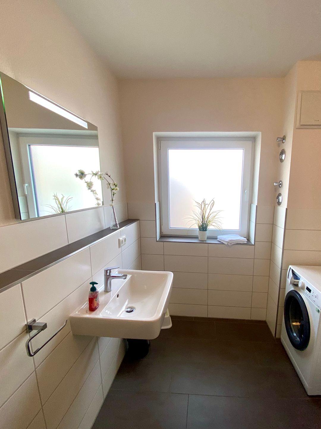 Es erwartet Sie eine bestens ausgestattete Wohnküche mit anschließendem Ess- und Wohnbereich mit Blick auf die möblierte Terrasse ( teilweise überdacht) und den Garten. Die Wohnung verfügt zudem über ein Schlafzimmer mit Doppelbett (2 x 80x200 cm) und ein Schlafzimmer mit zwei Einzelbetten (90x200 cm). Im großzügigen Badezimmer mit Fenster finden Sie ebenerdige Dusche, Waschbecken, Toilette und eine Waschmaschine.