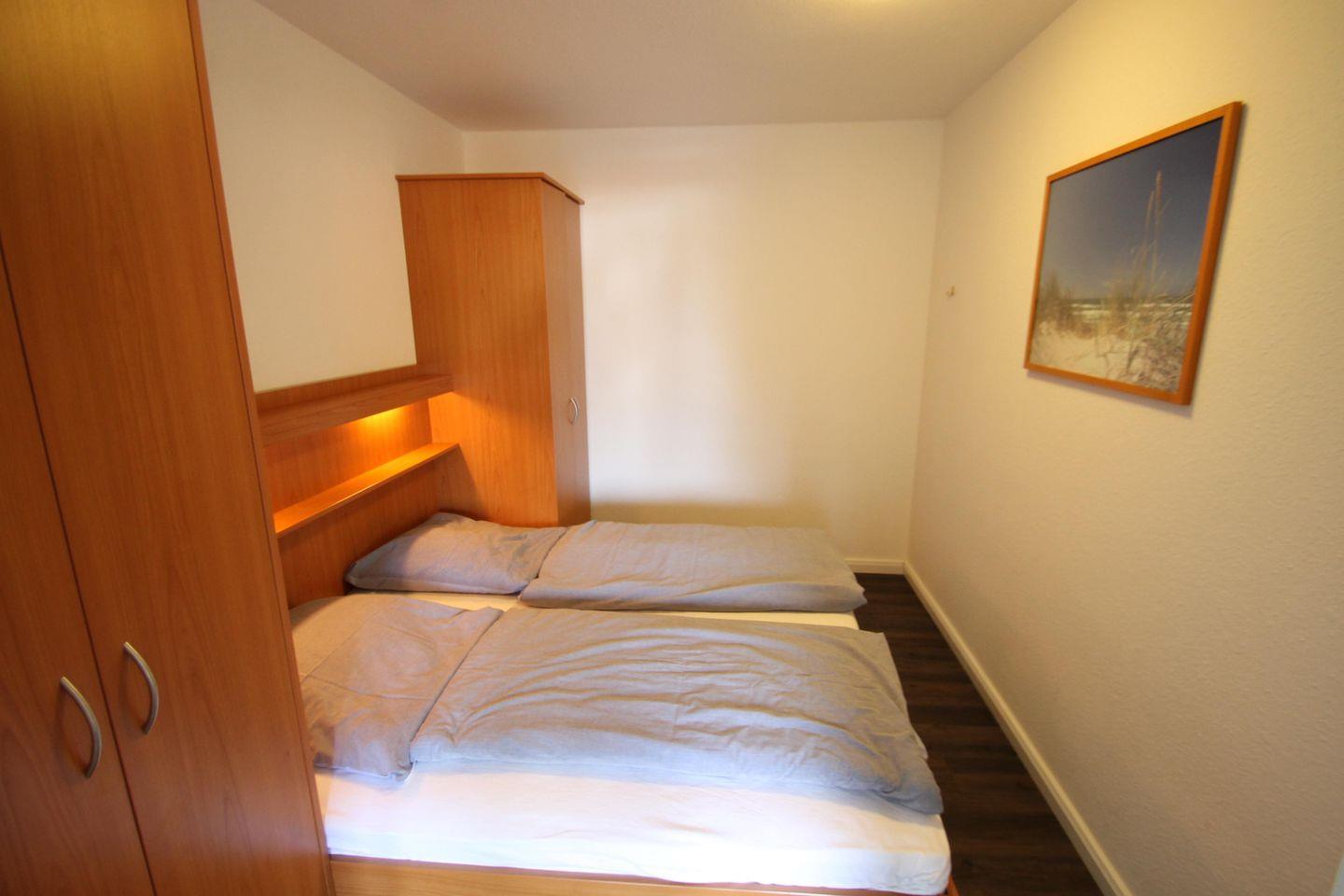 Hell und freundlich eingerichtete Ferienwohnung im 2 OG. Die hochwertige Ausstattung wurde mit viel Liebe zum Detail ausgewählt. Im Wohnzimmer befindet sich eine gemütliche Couchgarnitur aus Leder sowie ein großer Flachbildfernseher. Der möblierte Balkon erschließt sich über die gesamte Wohn-/Esszimmerbreite zur Westseite. Hier können Sie die Nachmittag- und Abendsonne genießen. Alle Fenster verfügen über elekrische Außenrolläden. Im Kinderzimmer steht ein solides Etagenbett, welches auch für Erwachsene geeignet ist. Das Elternschlafzimmer verfügt über ein modernes Doppelbett mit Schränken. WC mit Handwaschbecken und modernes Duschbad sind voneinander getrennt. - Besonderheiten: abschließbare Fahrrad-Garage, Internet/WLAN-Anschluss kostenfrei, elektrische Außenrollläden, Bollerwagen. Der PKW-Stellplatz befindet sich direkt am Haus. In der Dünenresidenz finden Sie die Ruhe und Entspannung, nach der Sie suchen.