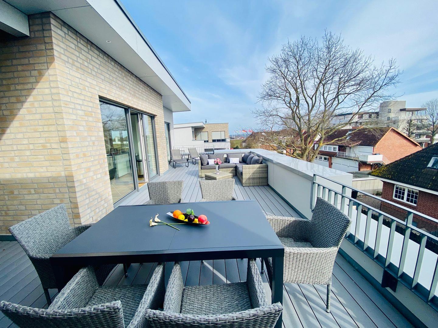 Penthousewohnung - modern eingerichtete 3 Zi-Wohnung mit sehr großer Dachterrasse und Meerblick