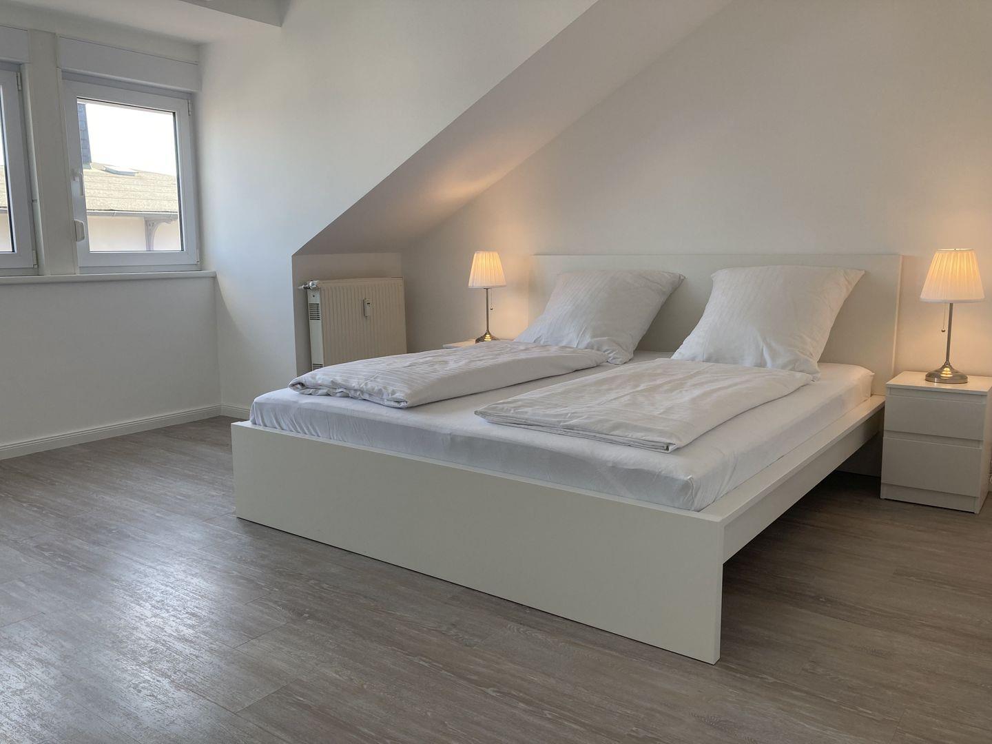 - Schlafzimmer mit Doppelbett und Kleiderschrank