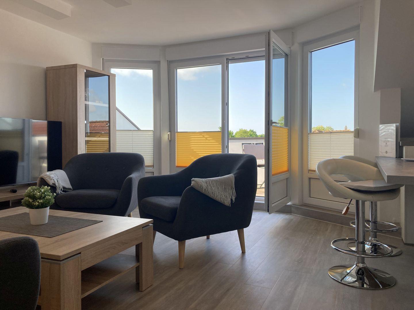 - Wohn- und Küchenbereich durch Tresen abgeteilt
