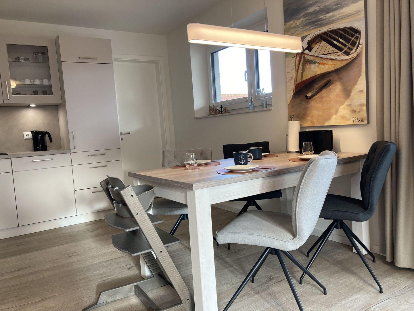 • offene voll ausgestattete Küche (SIEMENS Markengeräte) mit Essplatz für 4 Personen