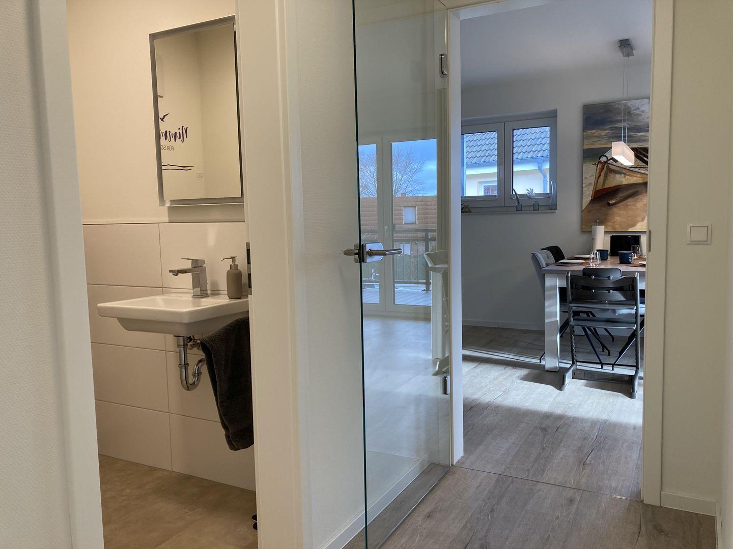 • Hochwertiges Gäste-WC mit beleuchtetem Spiegel
