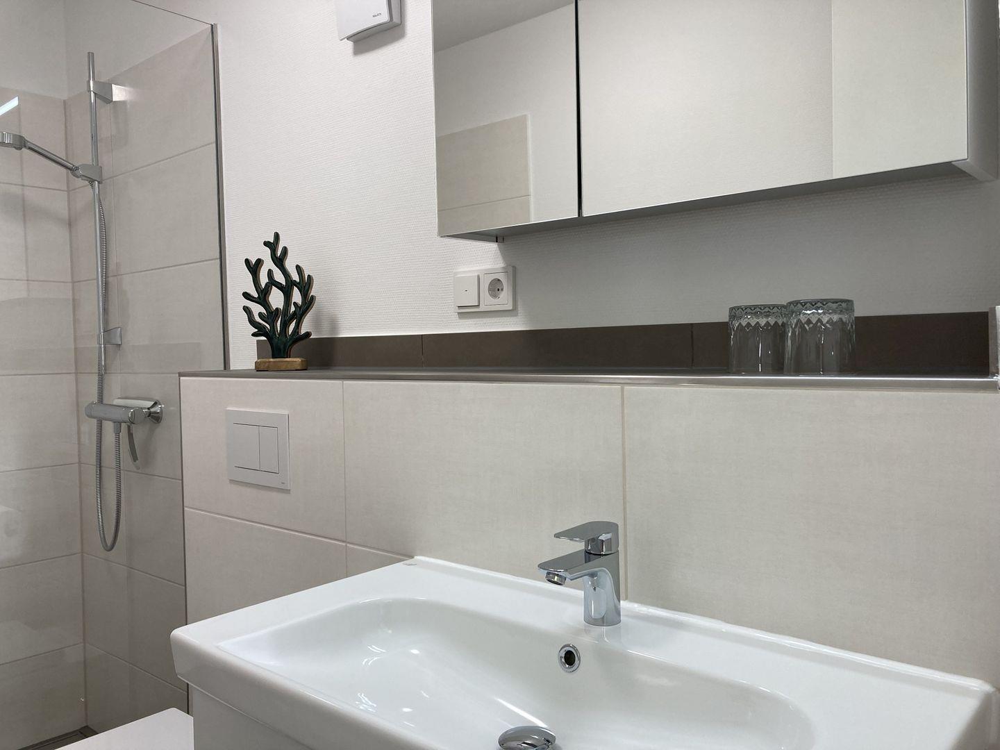 direkter Zugang zum dazu gehörendem Badezimmer mit Dusche und WC