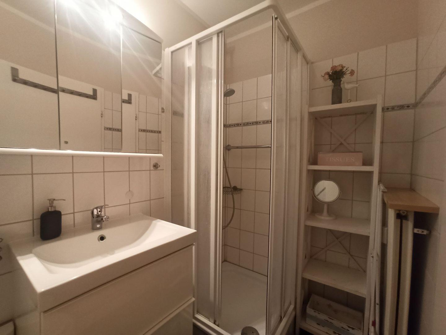 Das Badezimmer ist mit einer Dusche und WC ausgestattet.