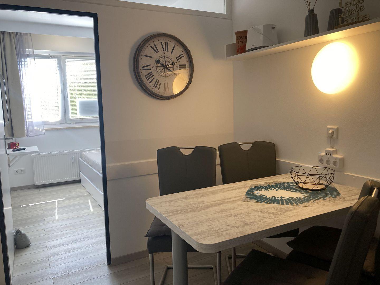 - voll ausgestattete Küche mit Geschirrspüler, Minibackofen mit Grill und Umluft, etc. und Essplatz für 4 Personen
