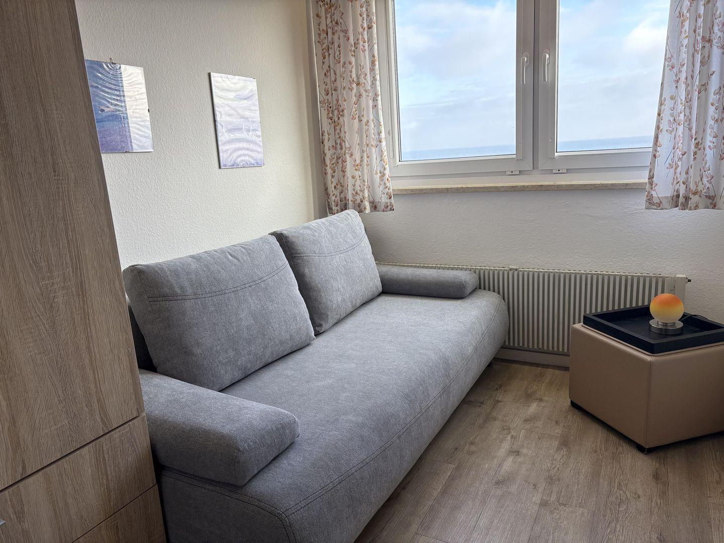 - Wohn-, Schlafzimmer mit gemütlicher Eck-Couch, Sessel und TV,