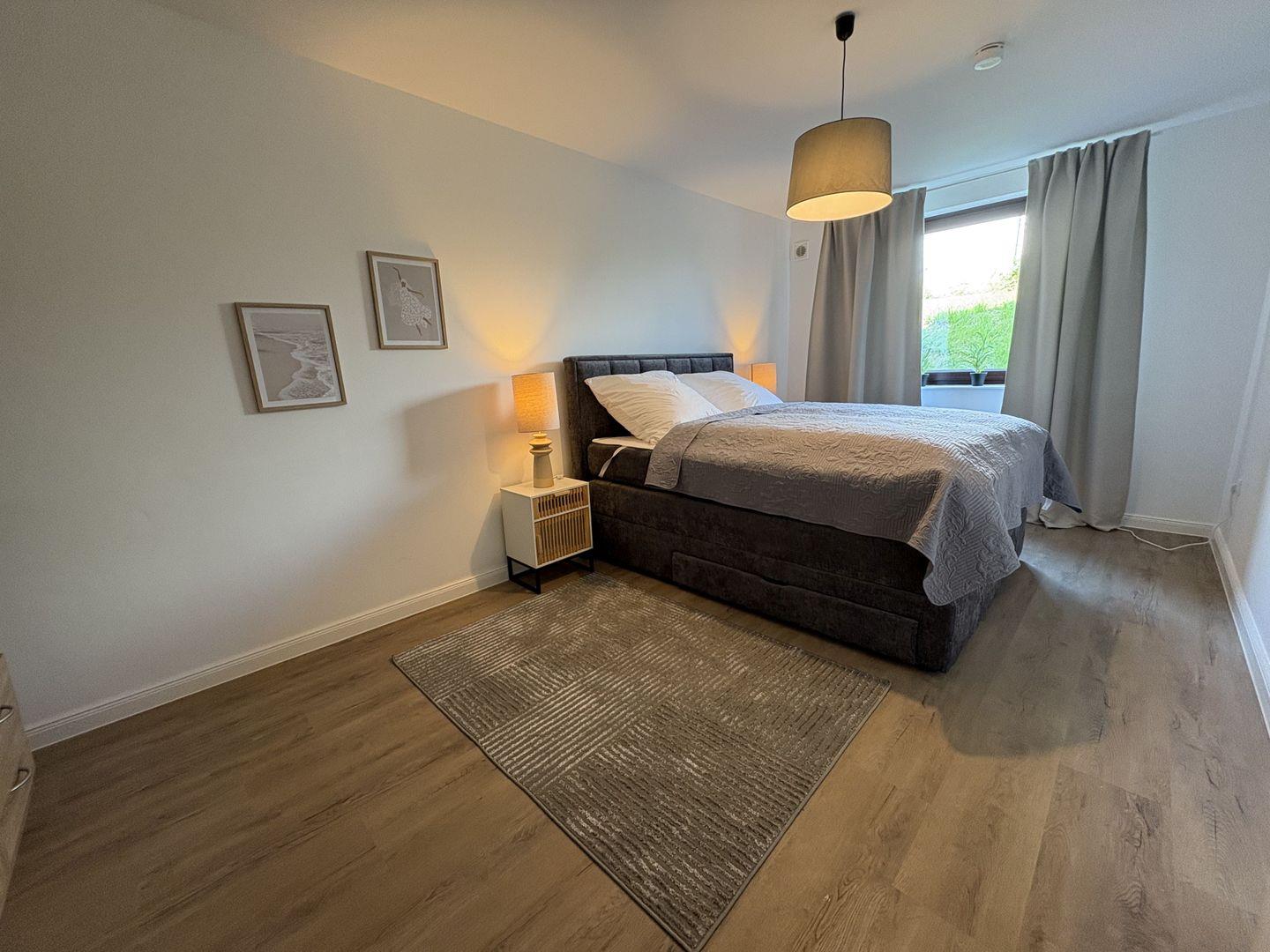 - Schlafzimmer mit hochwertigem Boxspringbett (durchgängige Matratze mit Topper),