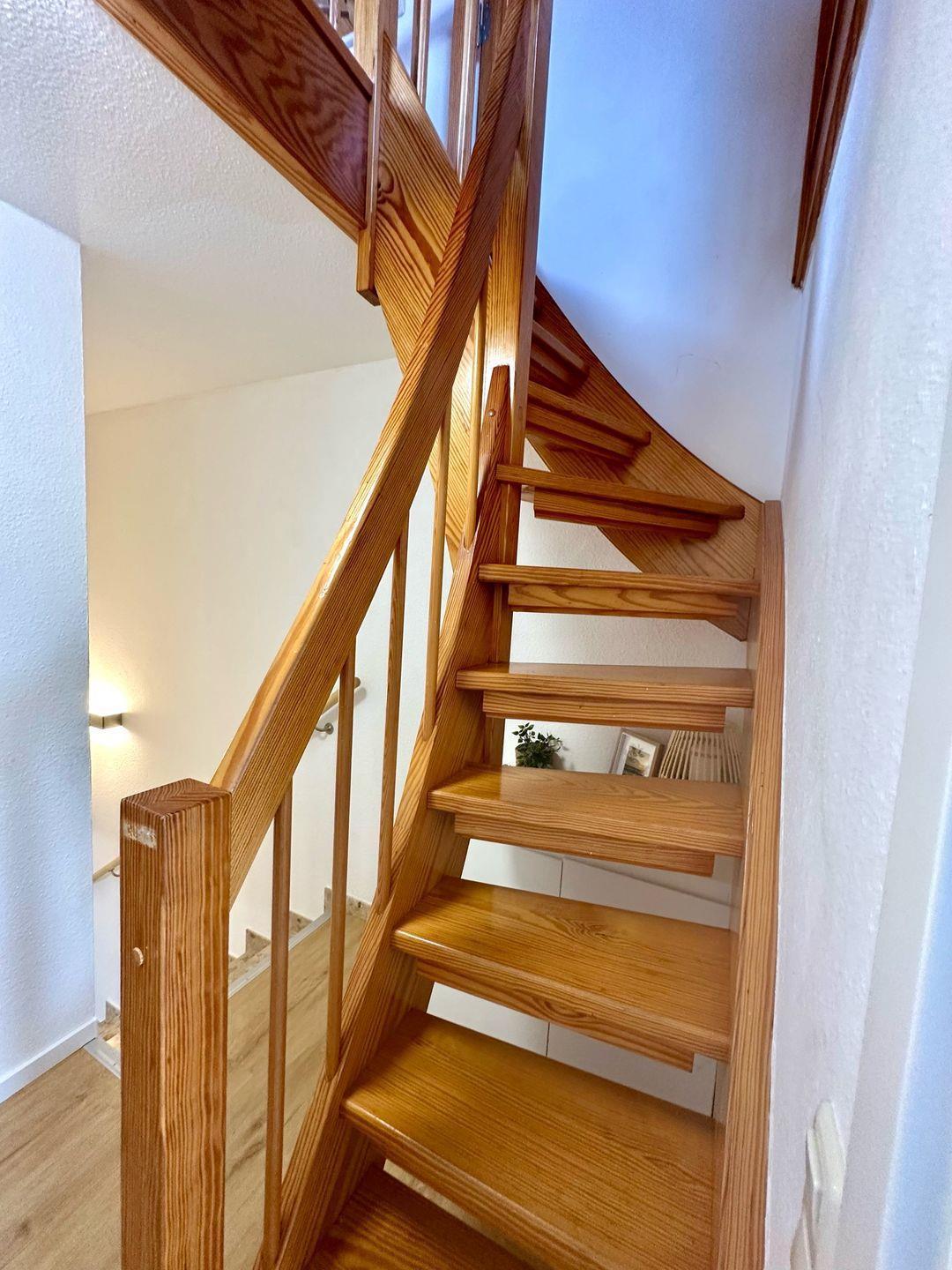 Die Unterkunft verfügt über drei geschmackvoll eingerichtete Schlafzimmer, die sich perfekt für einen angenehmen Schlaf nach einem ereignisreichen Tag am Strand eignen. Das 3. Schlafzimmer mit Fernseher im Dachgeschoss ist über eine offene , schmale Treppe erreichbar. Ein Badezimmer sowie ein Gäste-WC sorgen für zusätzlichen Komfort. Der helle Wohnbereich inklusive eines einladenden Sofas, Sessel und einem Esstisch lädt dazu ein, entspannte Abende zu verbringen. Die technische Ausstattung ist ebenso zufriedenstellend: Ein Fernseher, Radio, Waschmaschine und kostenfreies WLAN stehen zur Verfügung, um auch im Urlaub gut informiert zu bleiben oder die Lieblingsserien zu genießen.