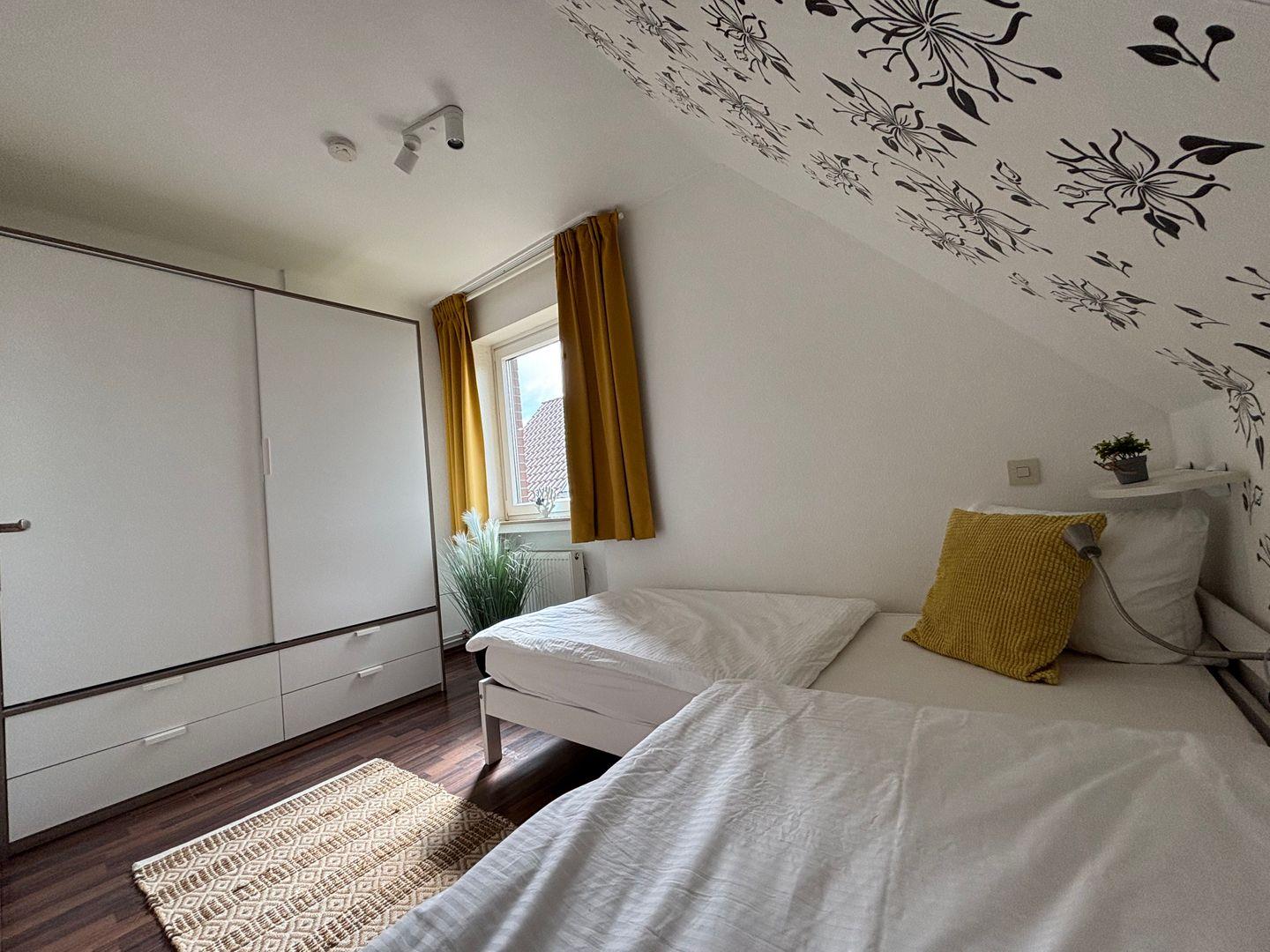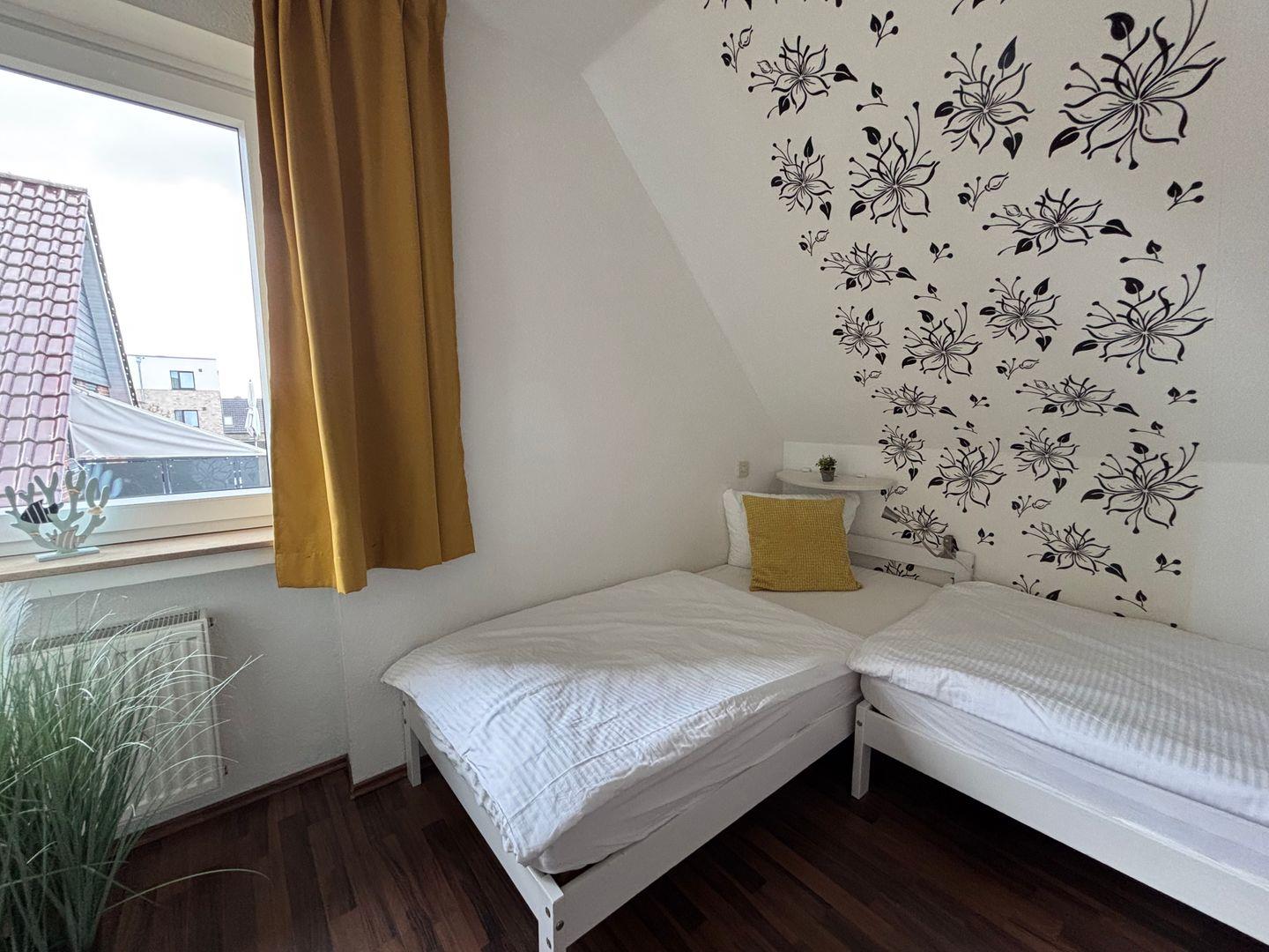 Zwei Schlafzimmer. Ein Schlafzimmer mit Hochbett. Ein Schlafzimmer mit zwei Einzelbetten. Maße 0,90 m x 2,00 m. Erholsamer Schlaf.