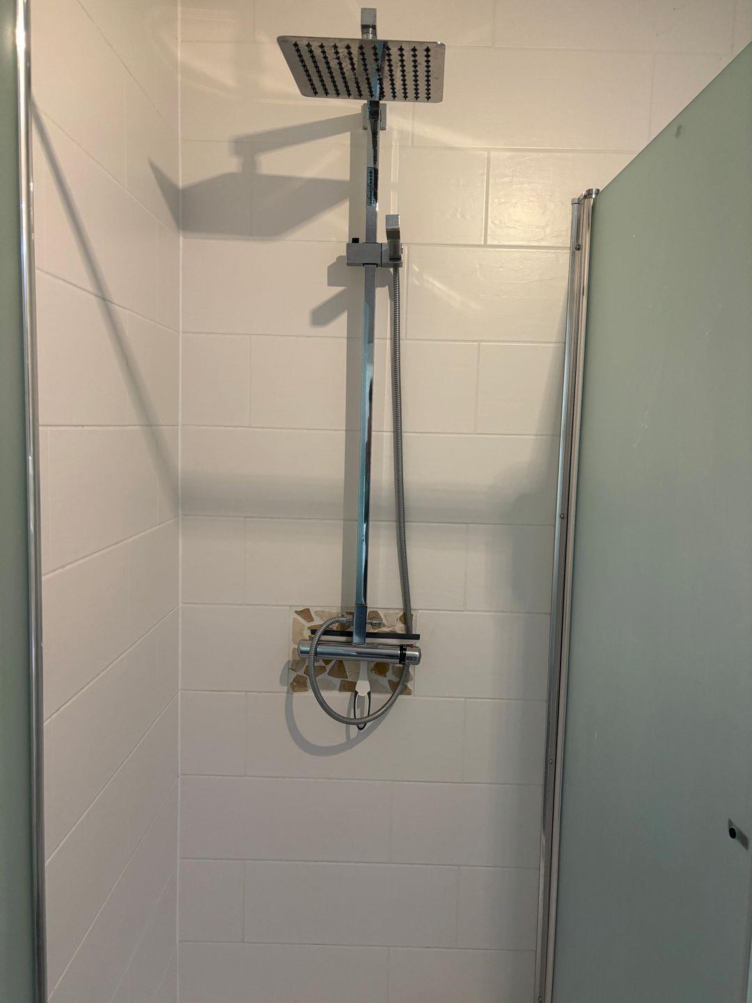 Bad mit Dusche. WC. Waschbecken.