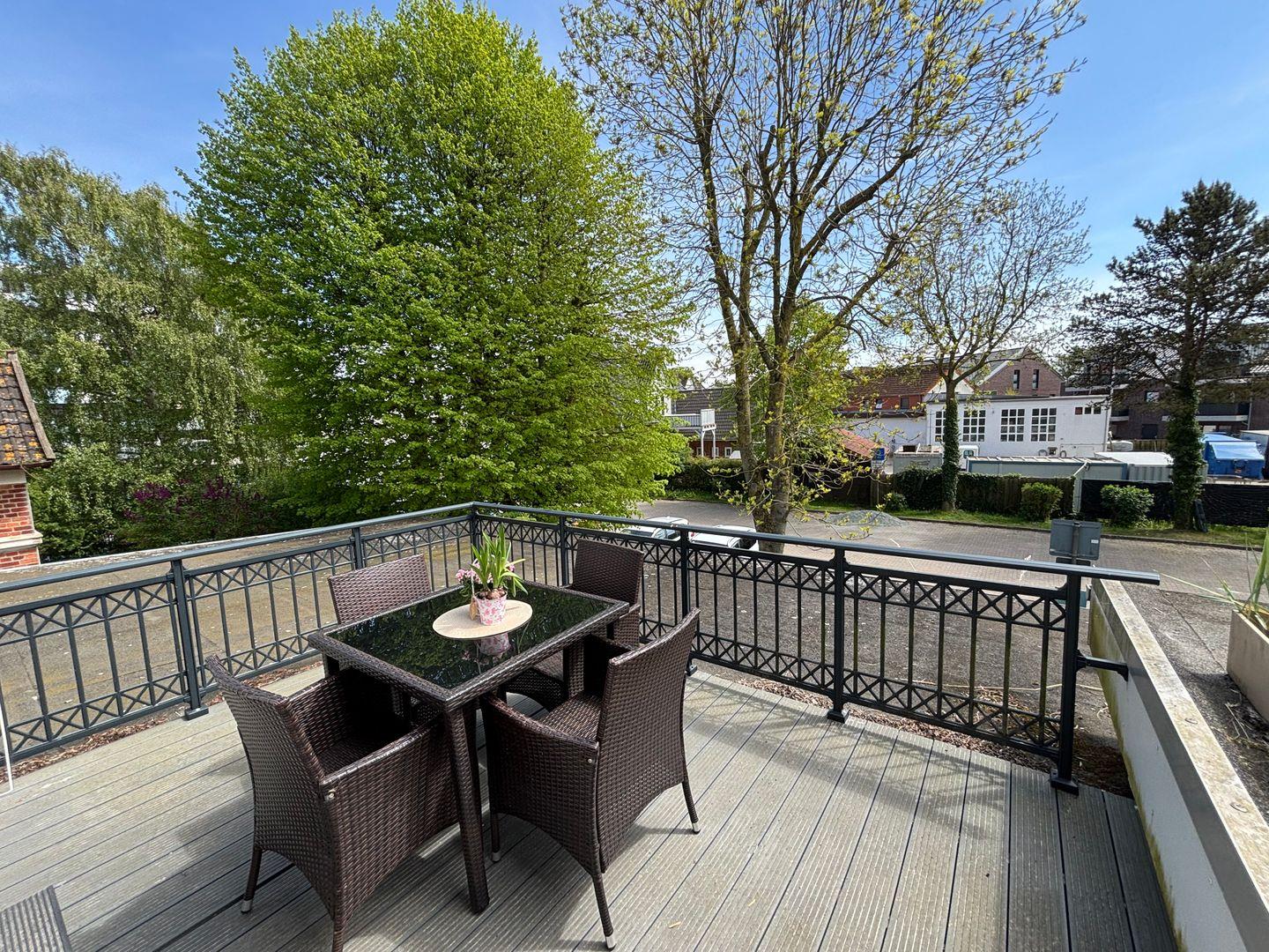 Auszeit im Freien. Balkon mit Gartenmöbeln.
