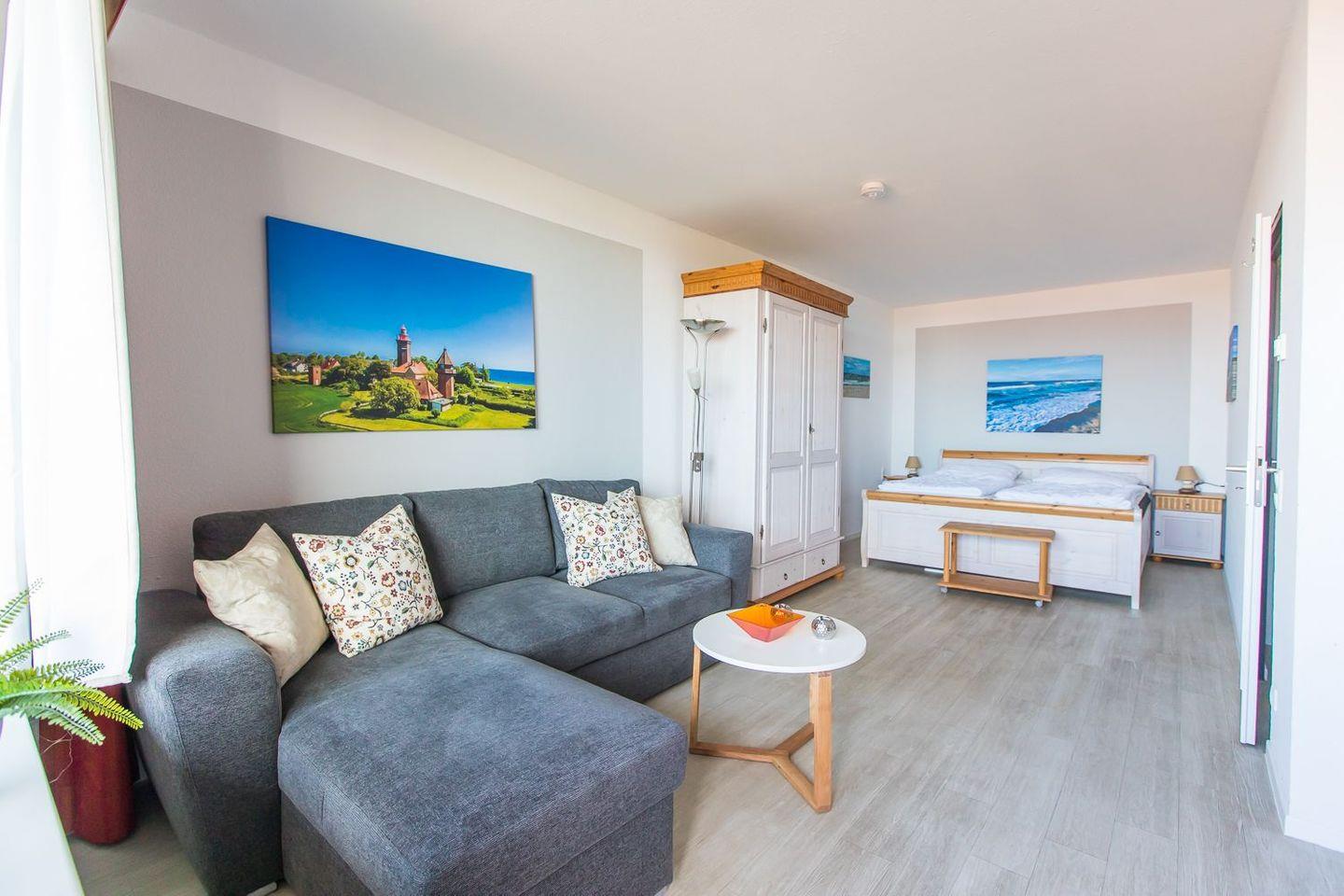 - Wohn-, Schlafzimmer mit gemütlichem Sofa und TV,