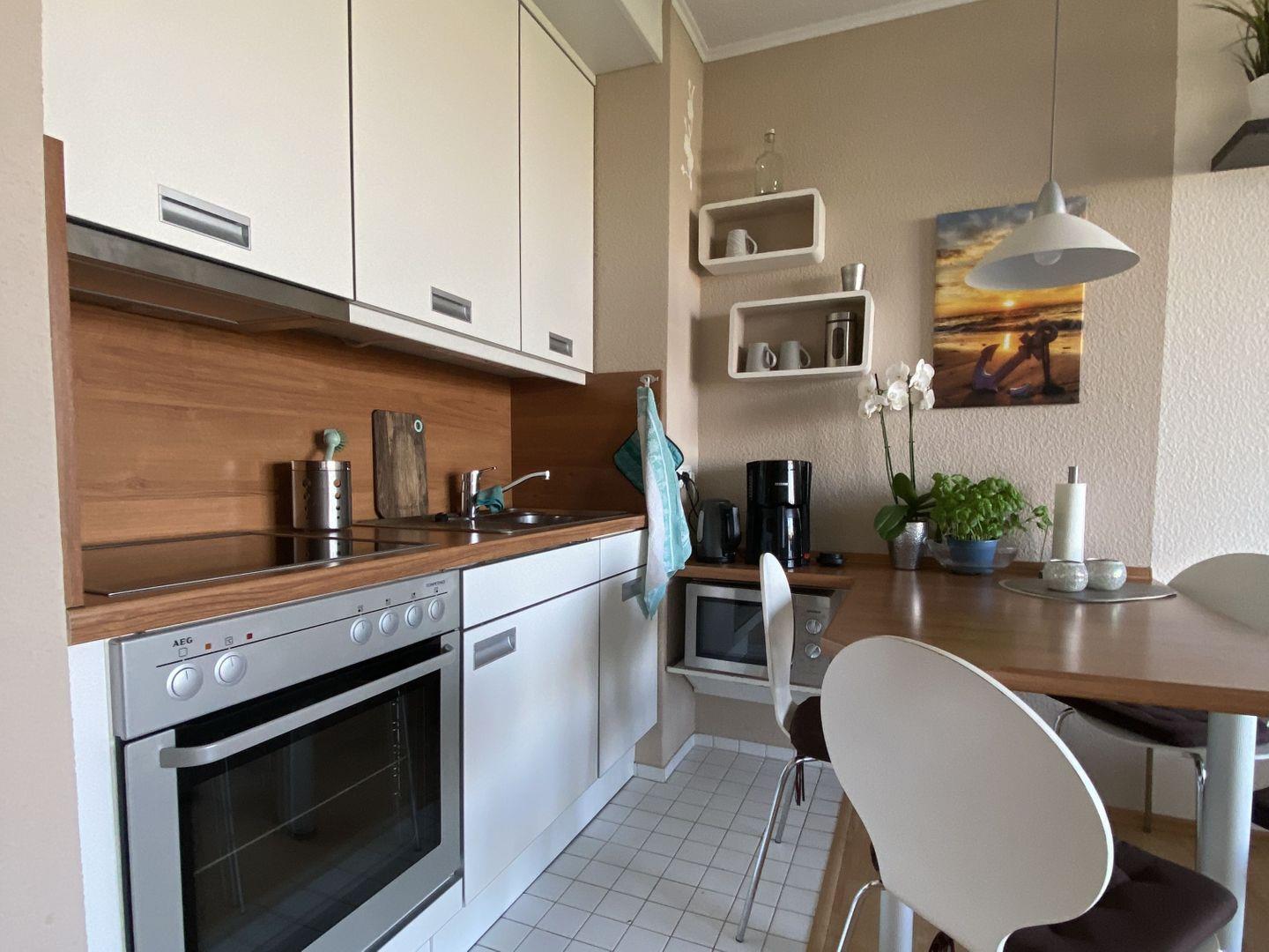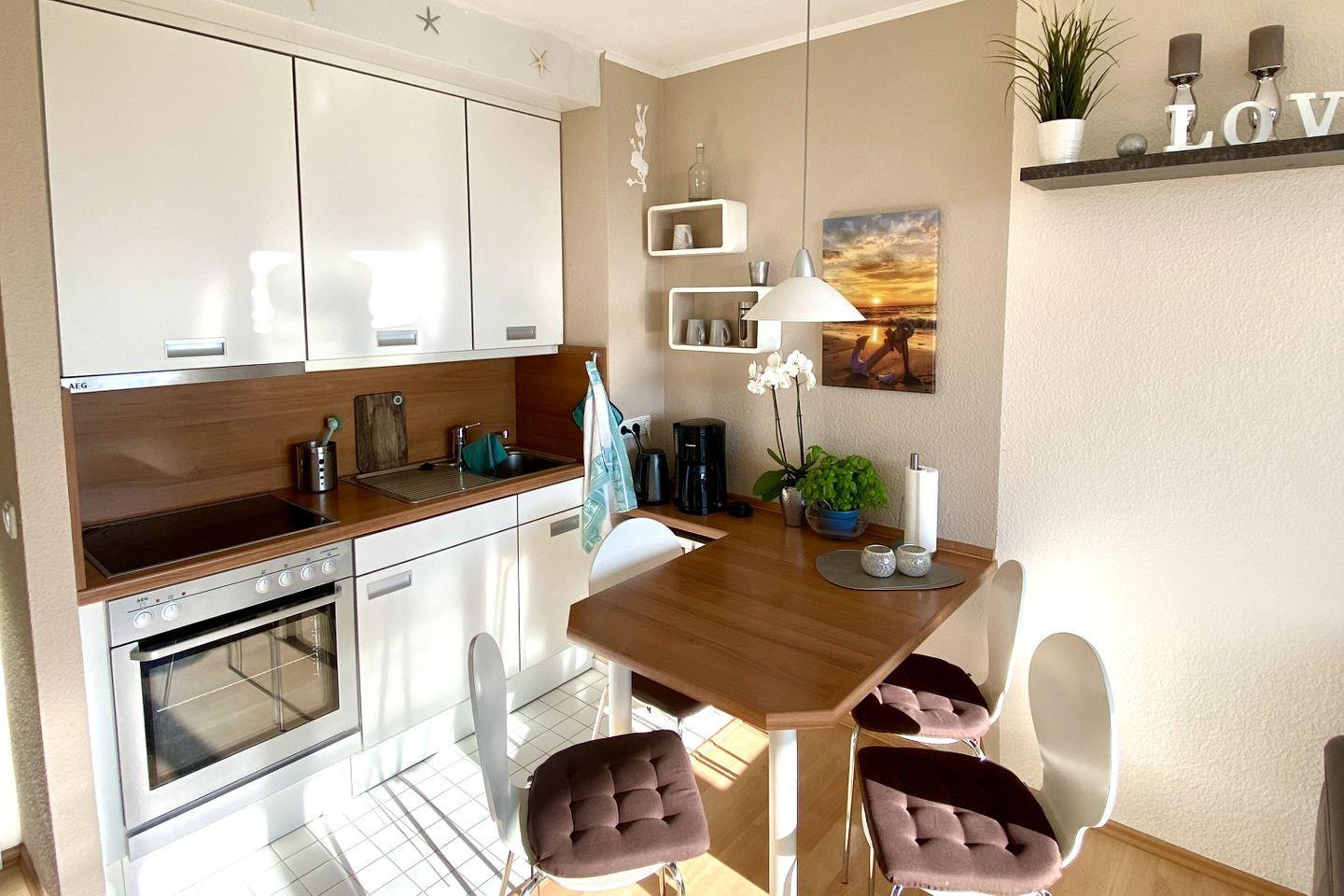 Schön gestaltete zwei Zimmer Wohnung in der Ferienanlage "Haus am Deich" für insgesamt bis zu 4 Personen. Zum Strand sind es über den Deich ca. 50 m. Die Wohnung ist im 2. Obergeschoss gelegen und verfügt, neben dem Wohn-/Esszimmer mit Schrankbett und offener Küche mit direktem Zugang zum Balkon, über ein Schlafzimmer mit Doppelbett, sowie einem schönen Duschbad. Ein PKW-Stellplatz steht Ihnen direkt am Haus zur Verfügung. Waschmaschine und Trockner stehen im Keller des Hauses. Bettwäsche und Handtücher können gegen eine Gebühr zur Verfügung gestellt werden. Die Ferienwohnung ist nur 2 Gehminuten von der schönen Dahmer Promenade und dem Strandleben entfernt! Dort finden Sie ein großes Angebot an Restaurants, Cafés, Bars sowie ein StrandSPA mit tollen Angeboten rund um Wellness, Sport und Fitness. Tennisliebhaber und Minigolfer kommen ebenfalls in Ihren Genuss! Im Ort befinden sich weitere Restaurants, Bäcker, Konditor, Lebensmittelmarkt, Tankstelle und ein Friseursalon. Dahme liegt zentral in der Lübecker Bucht und bietet auch in wenigen Fahrminuten schöne Ausflugsorte in der Nähe!