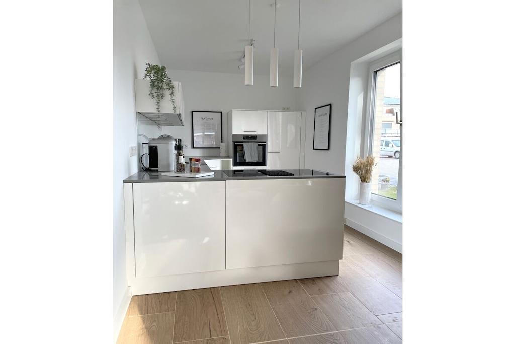 Vi lægger stor vægt på møbler af høj kvalitet og smagfuld indretning for at gøre dit ophold hos os så behageligt som muligt. I den åbne stue/spisestue med tilhørende fuldt udstyret køkken finder du et massivt træbord i moderne design samt en attraktiv sofa, der automatisk kan justeres efter dine behov. Fra stuen har du direkte adgang til terrassen, som er møbleret med siddepladser. Udendørsbelysningen og den overdækkede terrasse inviterer dig til at nyde lange sommeraftener. Det lyse, åbne køkken har alt, hvad du kan ønske dig, med masser af nyttige funktioner til et ubekymret ophold. Begge soveværelser er møbleret med boxmadras og rullegardiner. Til hyggelige aftener i sengen har hvert soveværelse et smart-tv.