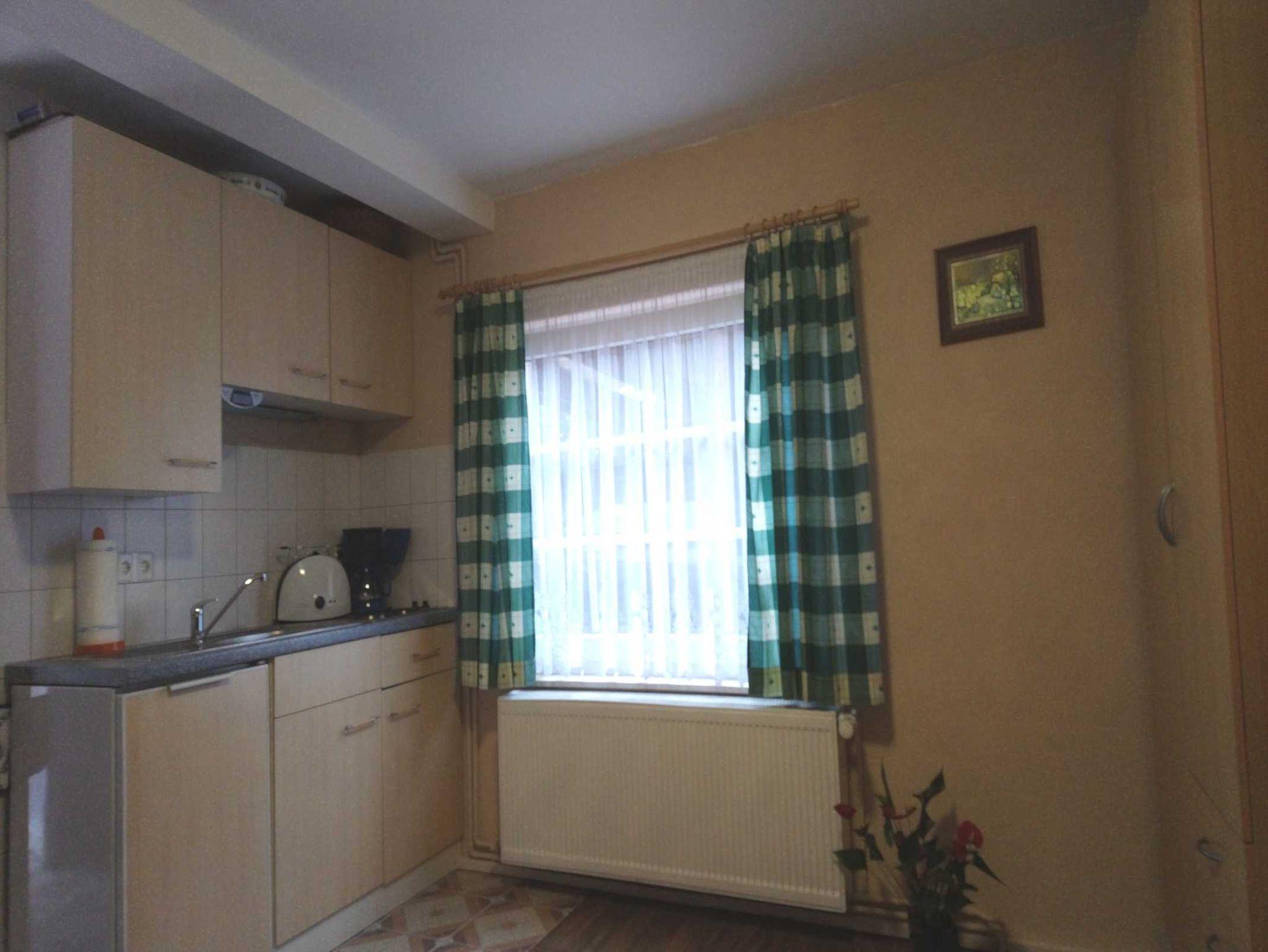 Die Ferienwohnung befindet sich in einem Einfamilienhaus und ist über einen separaten Zugang zu erreichen. Im Erdgeschoss gibt es einen Wohnraum mit Möglichkeit zur Aufbettung auf einer Schlafcouch und einer Kochzeile. Das Badezimmer befindet sich ebenfalls im Erdgeschoss und verfügt über Dusche und WC. Über eine Treppe ist das Schlafzimmer im Dachgeschoss zu erreichen. Dieses ist mit Teppichboden ausgelegt. Auf Wunsch können ein Kinderreisebett und ein Hochstuhl zur Verfügung gestellt werden.