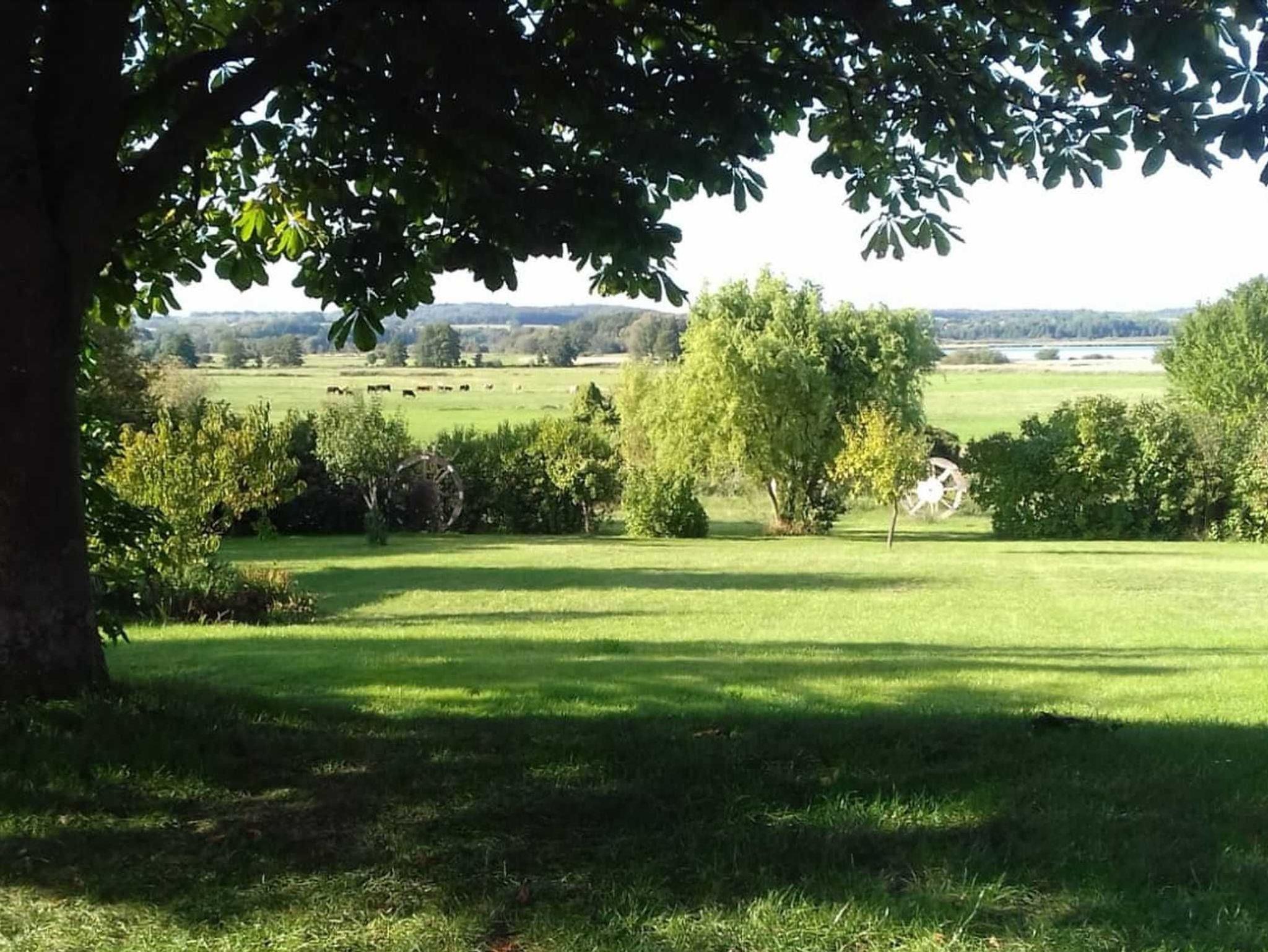 Auf dem weitläufigen Grundstück mit Blick zum See laden Sitzecken zum Entspannen ein. Spielgeräte für Kids sind ebenfalls vorhanden..