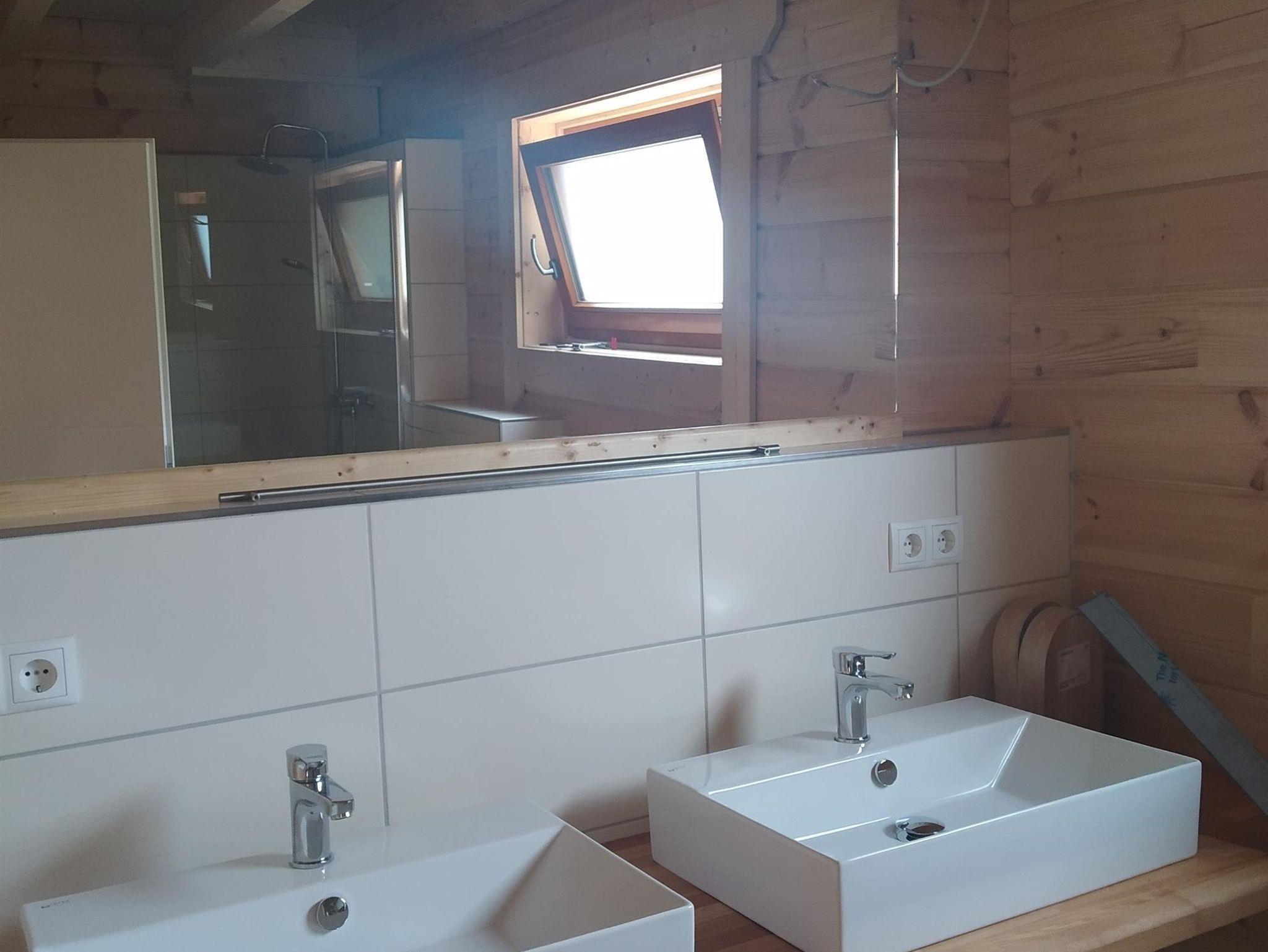 Doppelhaus in Holzblockbohlenbauweise mit 2 Wohnungen a 75 qm. Separate Eingänge, klimaneutral und ökologisch.