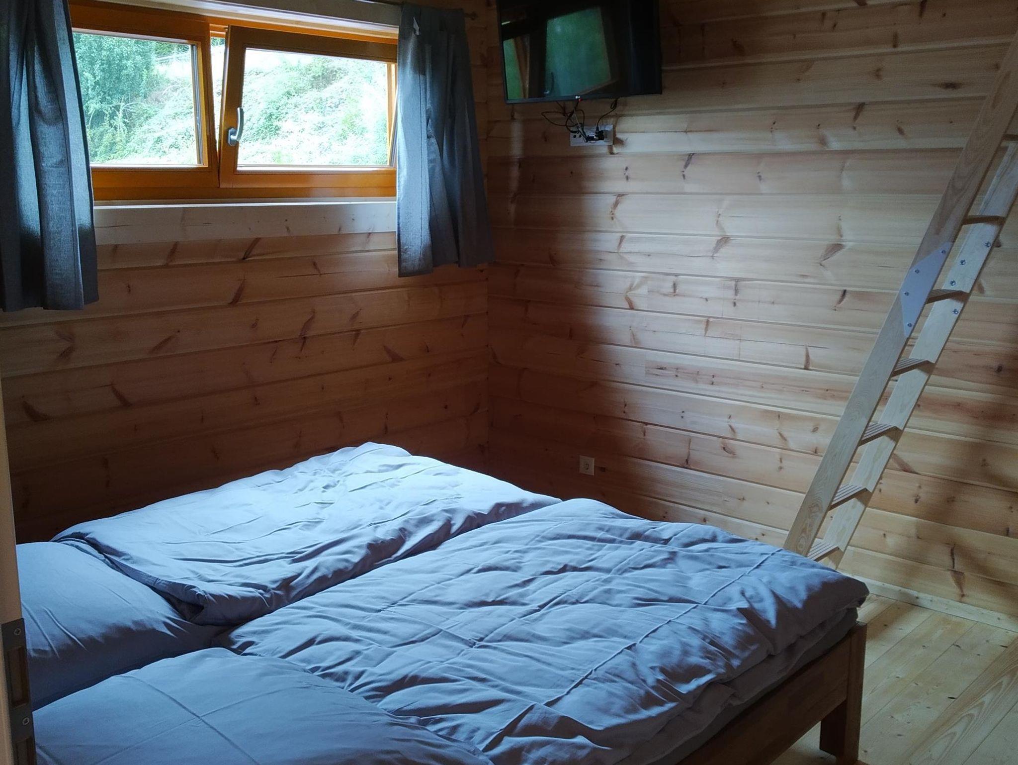 mit TV, große Fensterfront und Ausgang zur möbilisierten Terrasse, Bad mit Dusche und WC sowie ein zusätzliches WC in der oberen Etage.