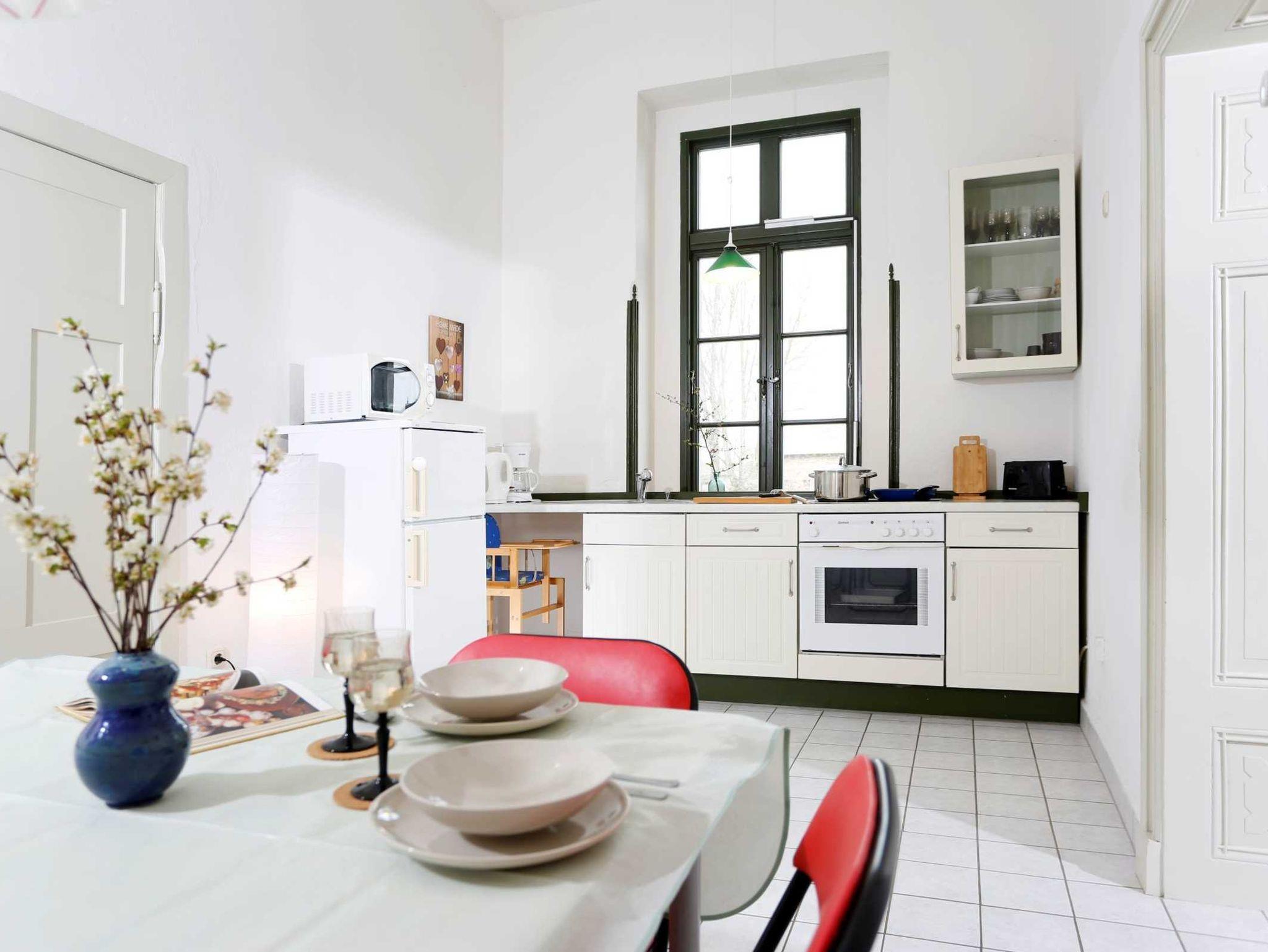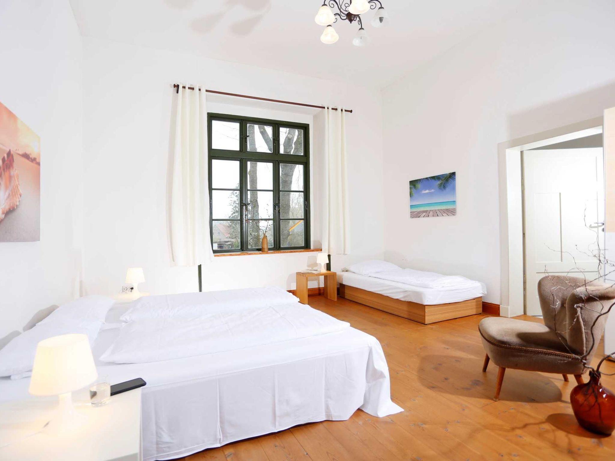 Gemütlich eingerichtete Wohnung im Erdgeschoss des Gutshauses, erreichbar über das dazugehörende Souterrain. Zur Wohnung gehören 2 Schlafzimmer mit Doppelbetten (eins mit zusätzlichem Bett), ein Wohnzimmer, eine komplett eingerichtete Küche, ein Bad mit Wanne und die Eingangsdiele im Souterrain. Die Wohnung ist beheizt mit einer Wandheizung und kann ganzjährig gemietet werden. Handtücher und Bettwäsche können Sie dazubuchen. Haustiere dürfen in diese Wohnung mitgebracht werden.