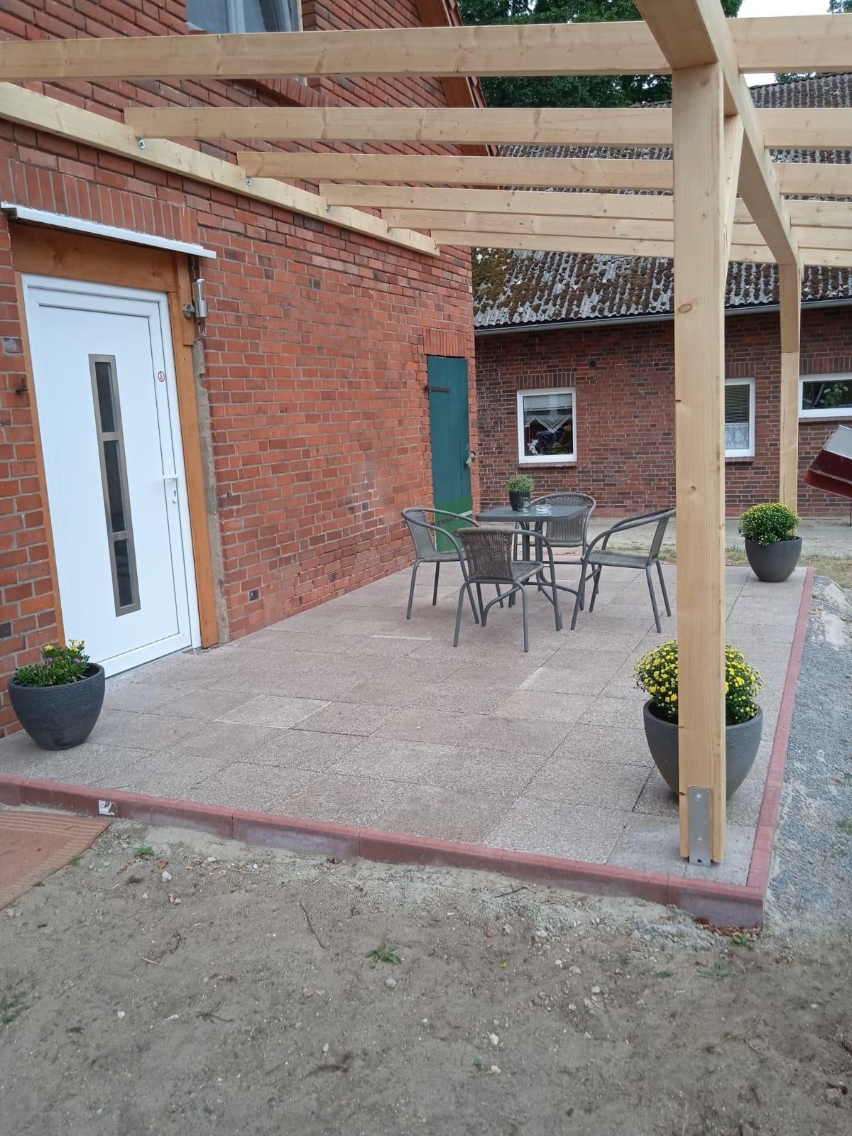 Die Ferienwohnung hat ihre eigene Terrasse vor der Haustür.