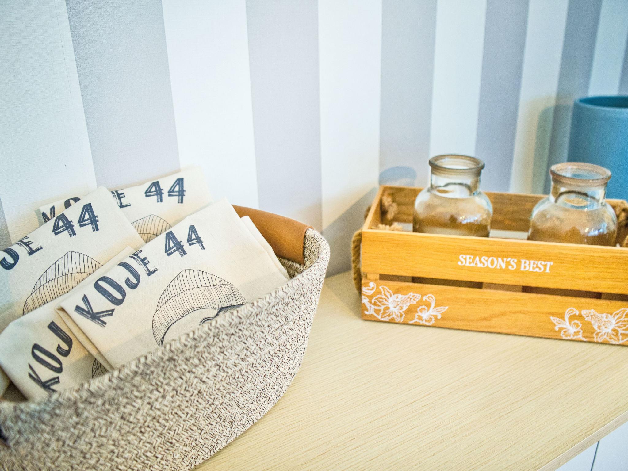 "Koje 44", 2-room apartment 45 m2 on 1st floor. Object suitable for 2 adults + 2 children. Cosy furnishings: living/sleeping room with 1 double sofabed (160 cm, length 200 cm), dining table and cable TV (flat screen). Exit to the balcony. 1 room with 1 double bed (180 cm, length 200 cm). Open kitchen (oven, 4 ceramic glass hob hotplates, toaster, kettle, electric coffee machine). Shower/WC. Small balcony. Balcony furniture, box-room. Facilities: Internet (WiFi, free). Please note: non-smokers only. Maximum 1 small pet/ dog allowed. Smoke alarm. No cats allowed.