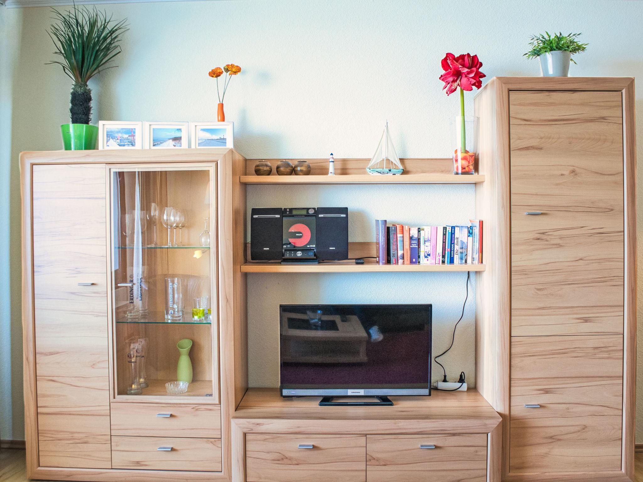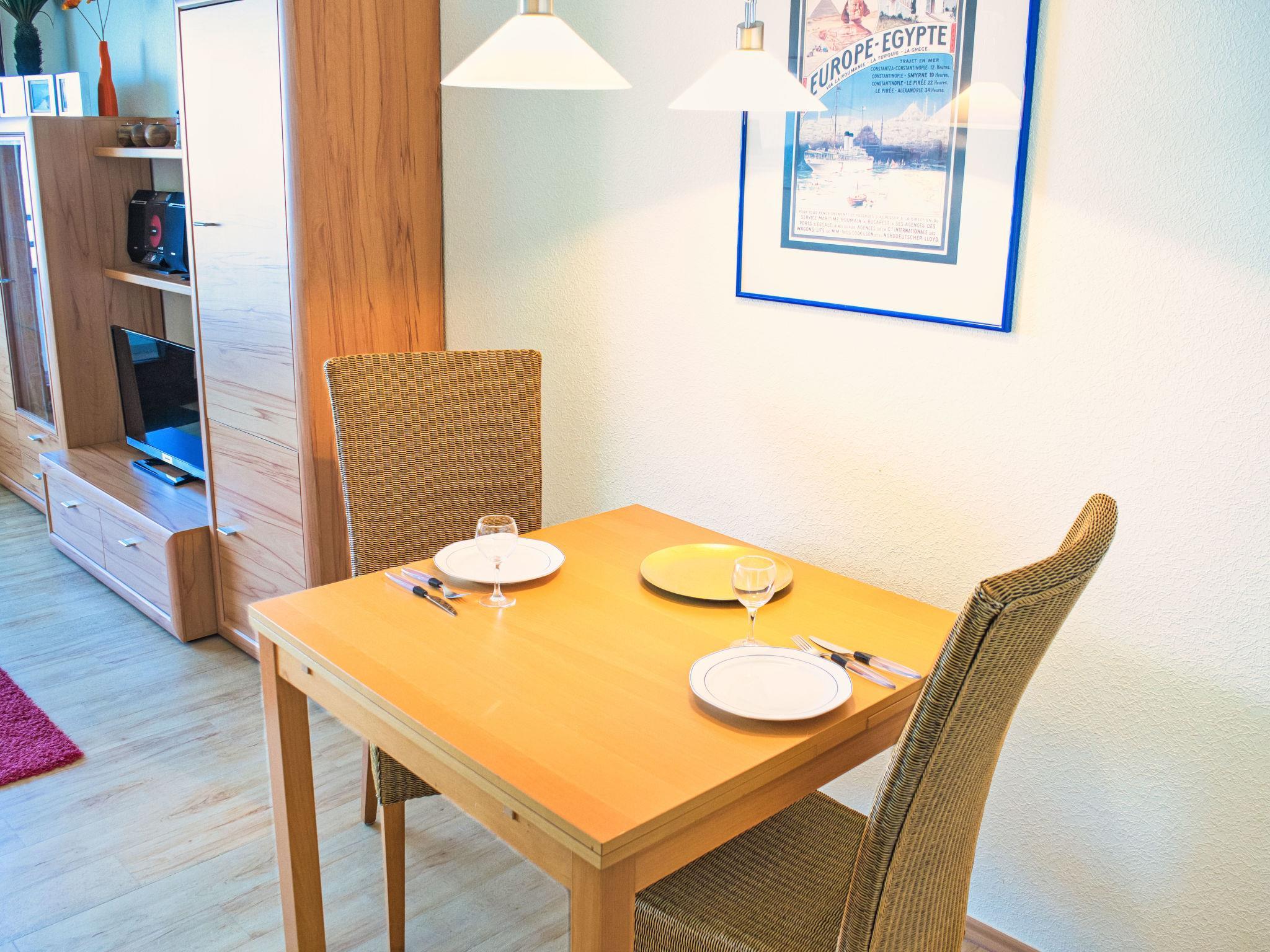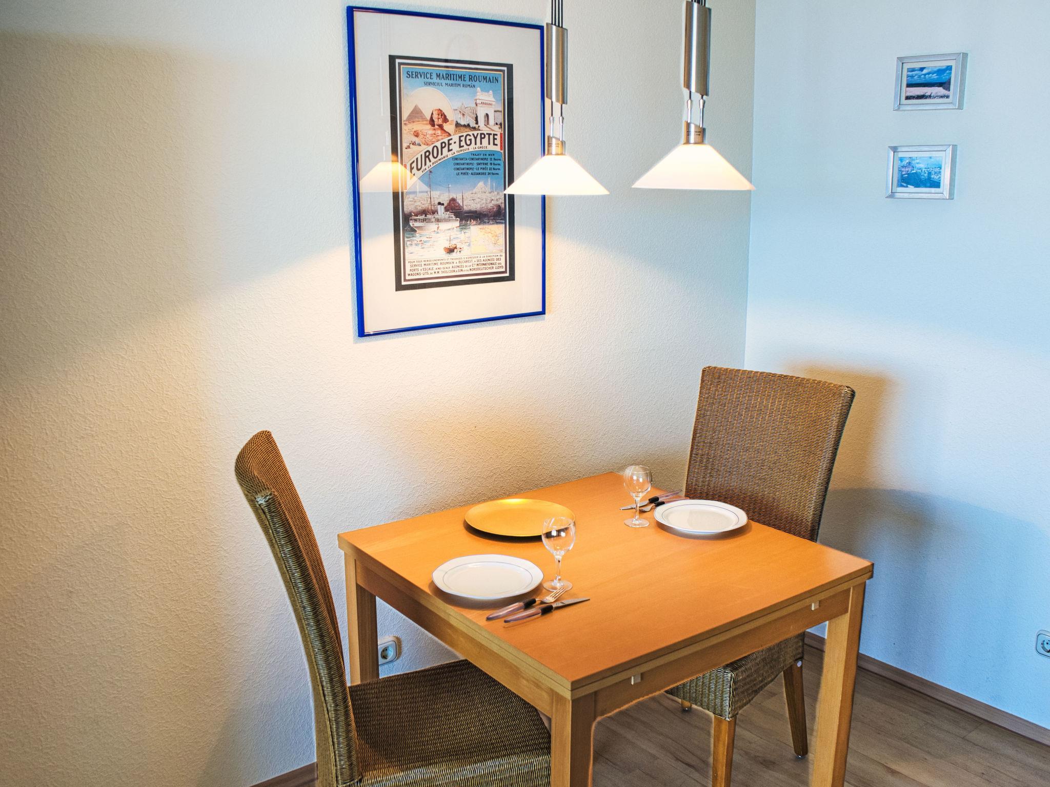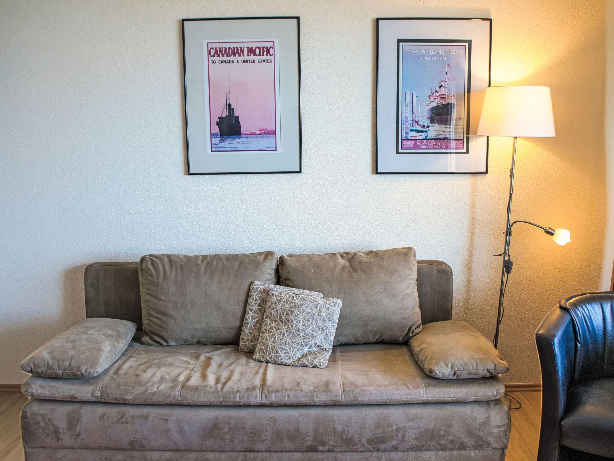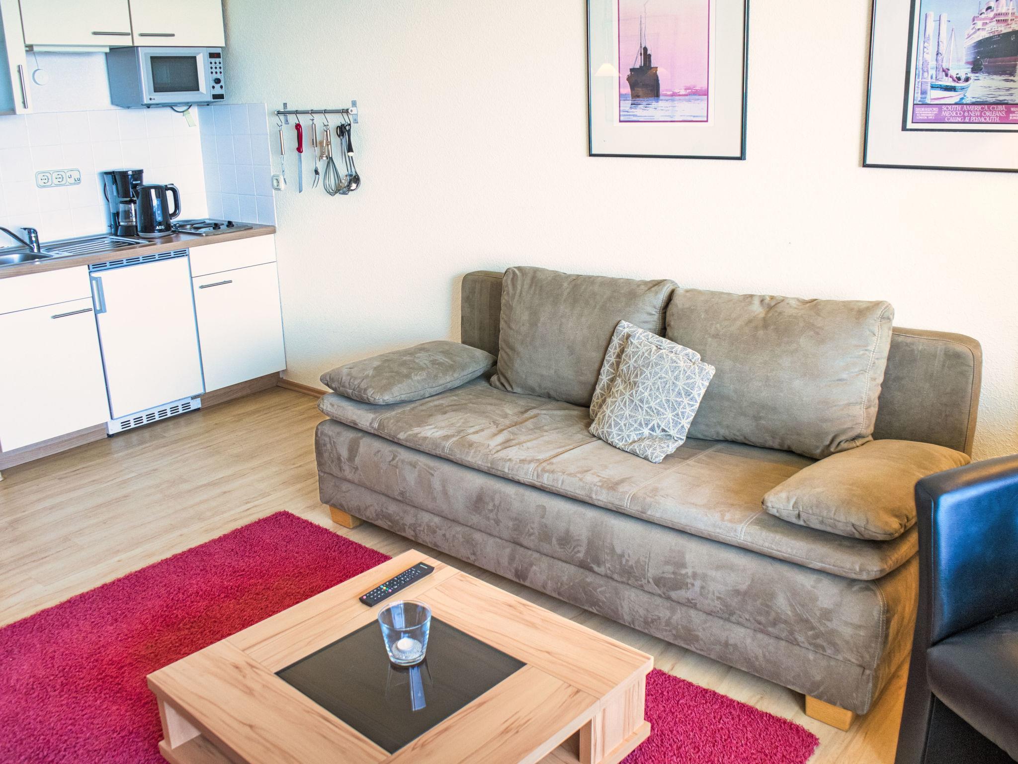 1-room apartment 35 m2 on 4th floor. Cosy furnishings: living/sleeping room with 1 double sofabed (180 cm, length 200 cm), dining table and cable TV (flat screen). Exit to the balcony. Open kitchen (2 hot plates, toaster, kettle, microwave, electric coffee machine). Shower/WC. Small balcony. Balcony furniture. Very beautiful view of the sea and the port. Facilities: Internet (WiFi, free). Please note: non-smokers only. 1 pet/ dog allowed.