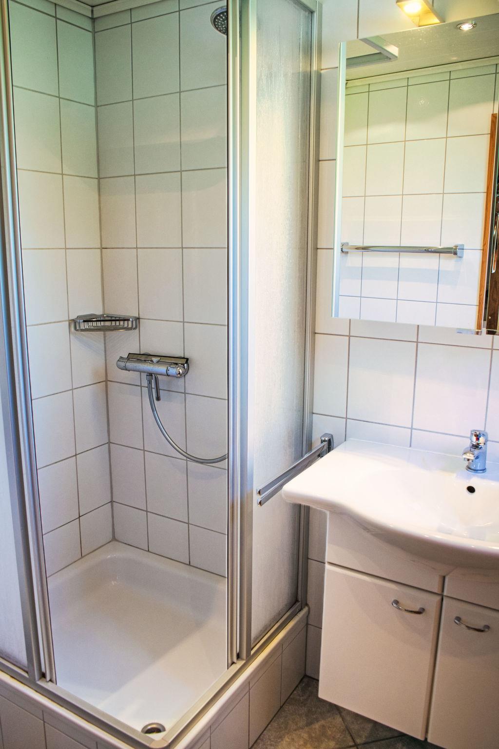 3-room house 68 m2 on 2 levels. Modern and cosy furnishings: open living/dining room with Scandinavian wood stove and satellite TV (flat screen). Exit to the garden, to the terrace. (oven, dishwasher, 4 ceramic glass hob hotplates, toaster, kettle, microwave, electric coffee machine). Shower/WC. Wood heating. Upper floor: 1 room with 1 double bed (180 cm, length 200 cm), satellite TV (flat screen). 1 room with 2 beds (90 cm, length 200 cm). Large terrace roofed. Terrace furniture. Facilities: children's high chair, baby cot. Internet (WiFi, free). Please note: suitable for families. Non-smoking house. 1 pet/ dog allowed.