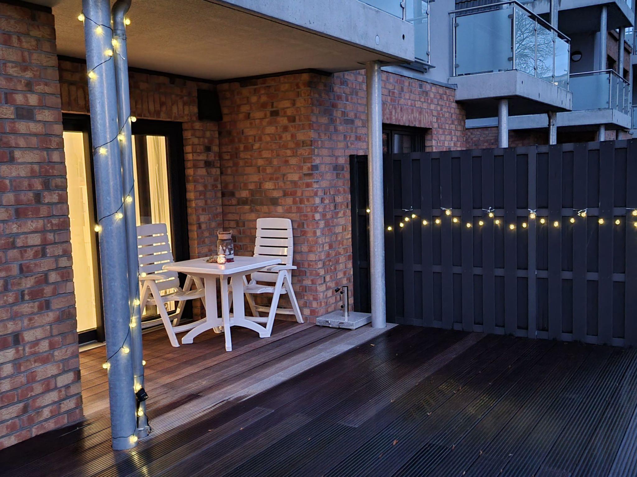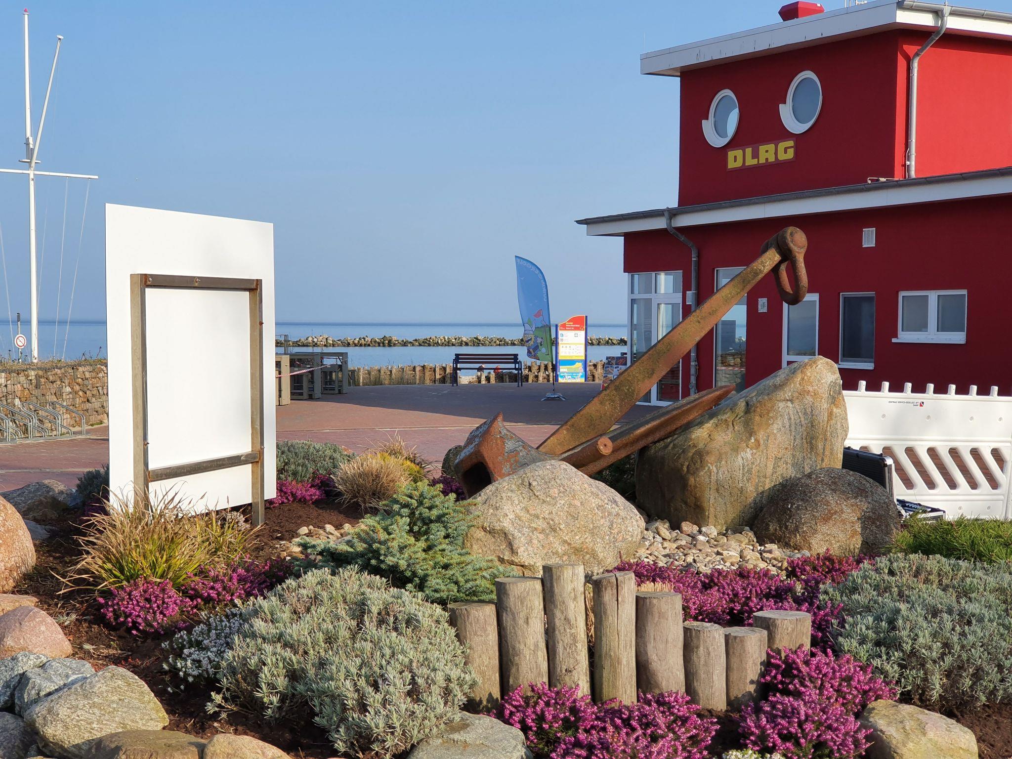 The light-flooded, newly built holiday flat "AnkerZeit" is located on Damp's lakeside path, diagonally opposite the marina. The flat with its modern, open-plan interior design extends over approx. 68 square metres, has underfloor heating and is suitable for up to 4 people. It is barrier-free. Sunbathing or long walks on the beach, bicycle tours or sightseeing in the vicinity invite you to an unforgettable holiday. Let the sun shine on your stomach or the wind blow around your nose. And then make yourself comfortable in our newly built holiday flat. Do you love cooking? The kitchen is fully equipped, making it fun to conjure up a menu. It flows into the living area with a cosy lounge area and large flat-screen TV, hi-fi system and Bluetooth speakers. The sleeping area is furnished with a box-spring double bed and a large wardrobe for your holiday wardrobe and is visually separated from the dining area. The living area can also be used as a large sofa bed so that 2 more people can sleep there. The dining table is particularly large, making it ideal for four-person games evenings: Various games are of course at your disposal. The high-quality bathroom has a walk-in shower and a towel dryer. From the living room and dining area, you can access the large, partially covered south-facing terrace (28m²) with cosy seating and loungers. The electric fireplace adds to the cosy atmosphere in the evening. A large infrared sauna with aromatherapy is available for further relaxation.
