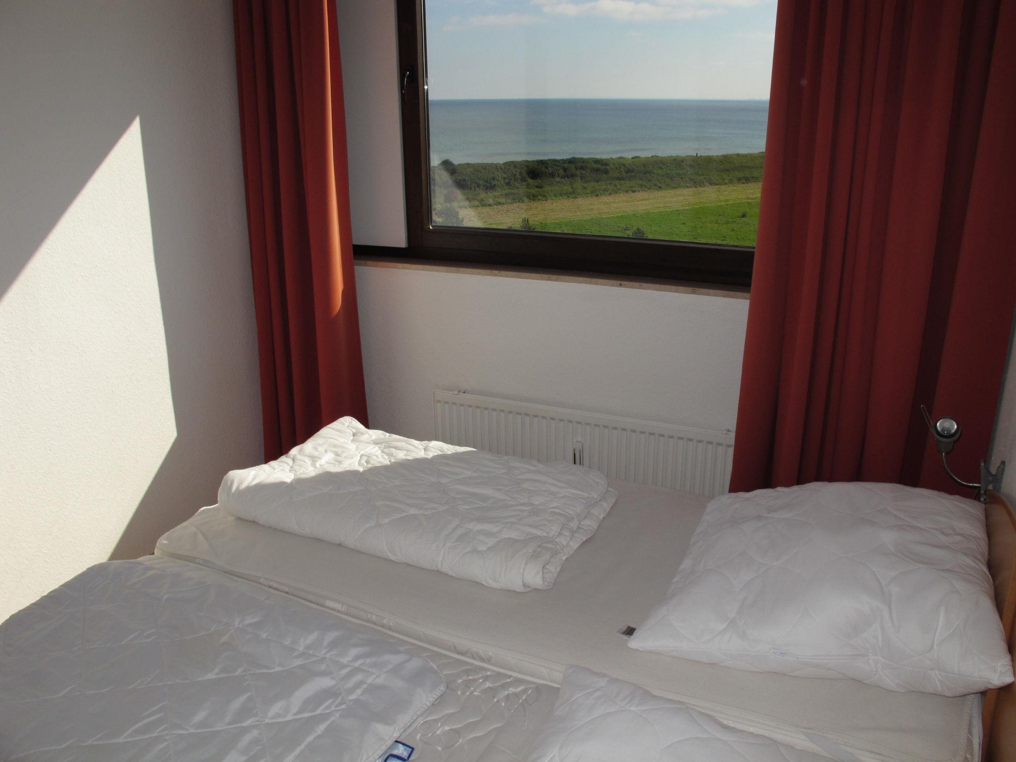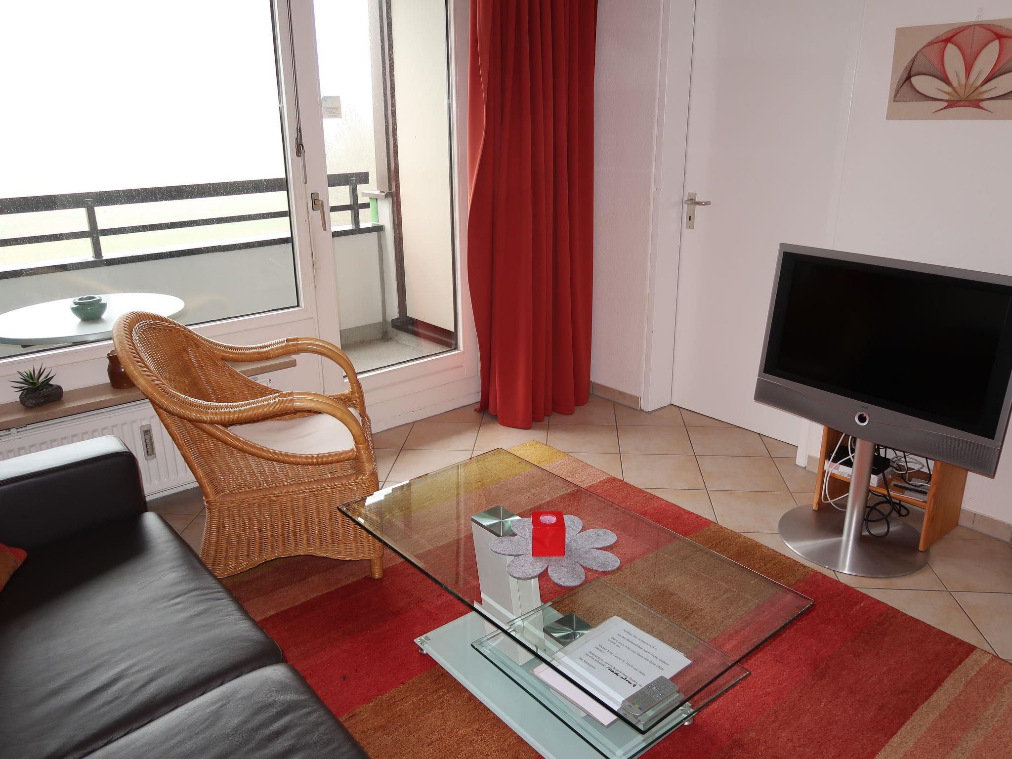 "Ostsee-Residenz (DMP152)", 2-room apartment 45 m2 on 6th floor. Cosy furnishings: living/sleeping room with 1 double sofabed (160 cm, length 200 cm), dining table, cable TV, radio and CD-player. Exit to the balcony. 1 room with 1 double bed. Open kitchen (oven, dishwasher, 4 ceramic glass hob hotplates, toaster, kettle, electric coffee machine). Shower/WC. Balcony furniture, box-room. Beautiful view of the sea. Facilities: Internet (WiFi, free). Please note: non-smokers only. Maximum 1 pet/ dog allowed. Smoke alarm, fire extinguisher.