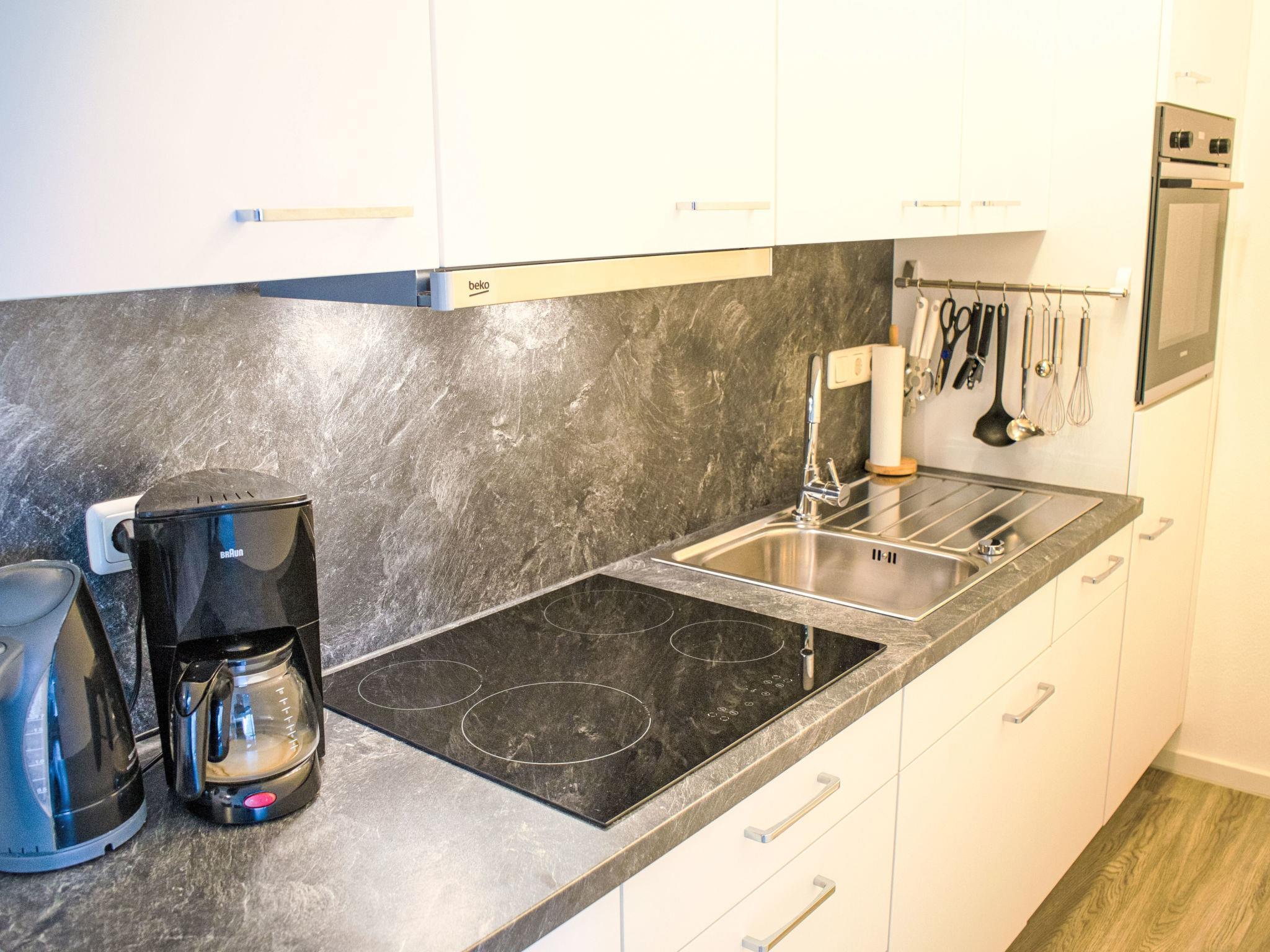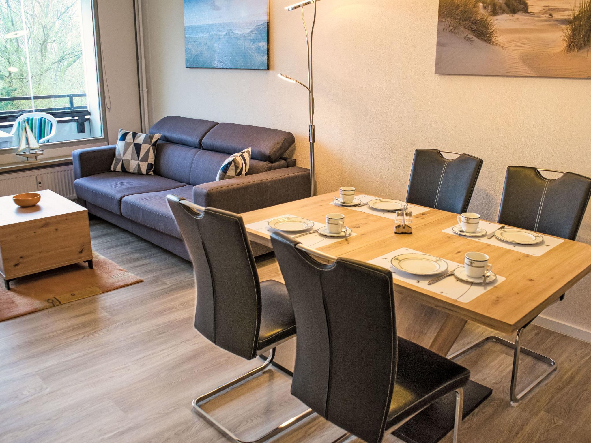 "Ostsee-Blick", 2-room apartment 49 m2 on 2nd floor. Bright, beautiful and cosy furnishings: open living/sleeping room with 1 double sofabed (140 cm, length 200 cm), dining table, satellite TV and flat screen. Exit to the loggia. 1 room with 1 double bed. Open kitchen (oven, dishwasher, 4 ceramic glass hob hotplates, toaster, kettle, electric coffee machine). Shower/WC. Gas heating. Balcony furniture, covered balcony. Very beautiful view of the sea. Facilities: washing machine. Internet (WiFi, free). Please note: non-smokers only. Maximum 1 pet/ dog allowed. Smoke alarm.