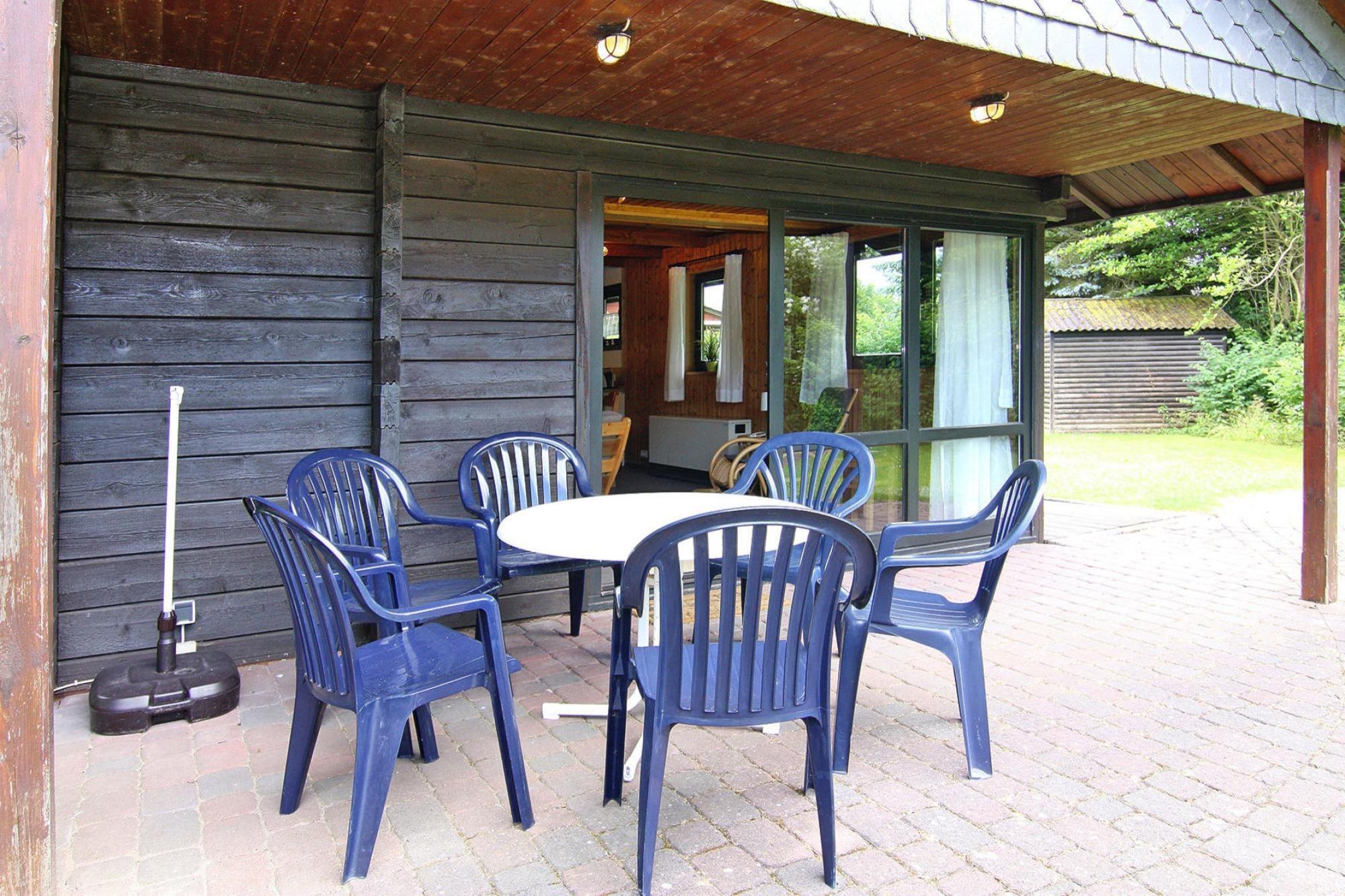 Åbent køkken(elkedel, brødrister, komfur(Komfur med fire kogeplader, glaskeramisk), emhætte, kaffemaskine, ovn, opvaskemaskine , køleskab(+ fryser)), stue / spisestue(Fjernsyn(parabol), radio, CD-afspiller), soveværelse(dobbeltseng(180 x 200 cm)), soveværelse(enkeltseng, enkelthøjseng), badeværelse(bruser, håndvask, toilet), grill, vaskemaskine, varme(elektrisk), terrasse, terrasse(overdækket), havemøbler, parkering, Parasol, Håndklæder/sengelinned (ekstra gebyr)