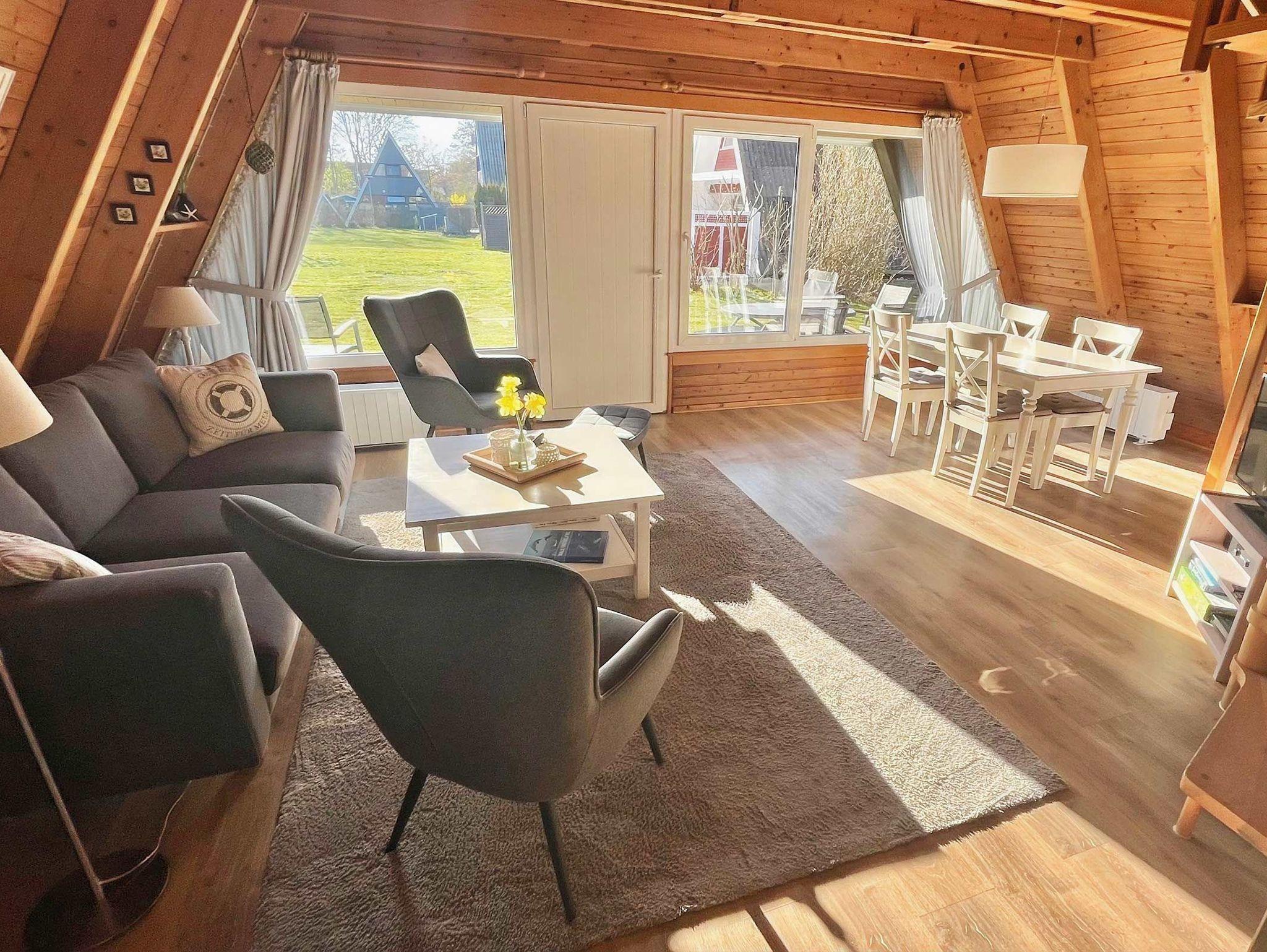 Unser Zeltdachhaus mit W-LAN verfügt über zwei getrennte Schlafräume (im oberen Bereich des Hauses), kombiniertes Wohn- und Esszimmer, vollwertige Küche und Terrasse. KInderreisebett und Kinderhochstuhl sind immer vorhanden und kostenlos nutzbar.