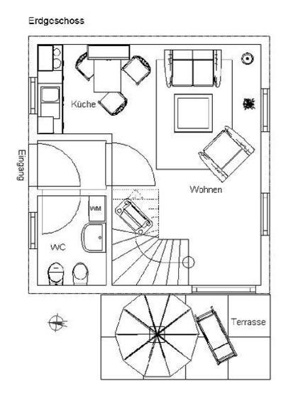 Sehr elegant eingerichtetes 5-Sterne Ferienhaus für 2 Personen im Maisonettenstil. Auf insgesamt 50 qm Fläche finden Sie im EG eine Nolte-Küche mit Cerankochfeld, Abzugshaube, Spülmaschine, Kühlschrank mit Gefrierfach, Mikrowelle. Essplatz, gemütliches Wohnzimmer mit Sat-TV, Telefon und kostenlosem WLAN-Internetzugang. Gäste-WC mit Waschmaschine.