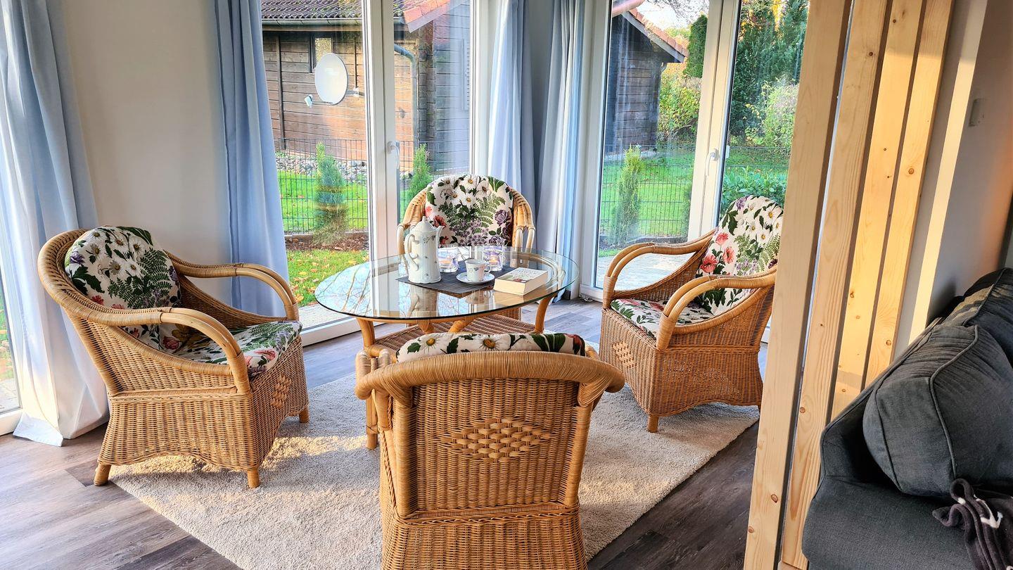 Der helle Wohn-und Essbereich mit offenem Wintergarten und angeschlossener offener Küche strahlt schon beim Betreten Gemütlichkeit und Urlaubsstimmung aus. Von hier aus gelangen Sie auf die sonnige Terrasse und in den vollständig eingezäunten, geschützten Garten, der perfekt geeignet ist, einfach mal abzuschalten, da auch Hunde und Kinder sich hier frei bewegen können, ohne die Angst, dass sie sich beim Nachbarn wiederfinden.