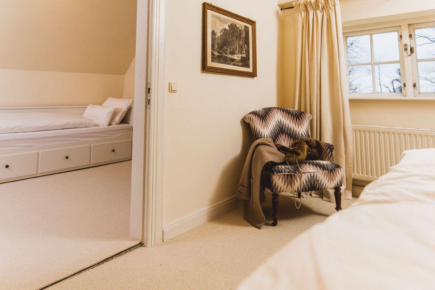 Das Gut Dorotheenthal liegt eingebettet zwischen Feldern und Wiesen nur wenige 100 Meter von der Ostsee entfernt. 16 Personen finden Platz, wenn alle Schlafplätze ausgenutzt werden. Zwei Schlafzimmer verfügen zusätzlich über ein Ankleidezimmer, in dem jeweils ein Zustellbett, das auf 1,80 ausgezogen werden kann, untergebracht ist. Das große Schlafzimmer unterm Dach verfügt insgesamt über vier Einzelbetten und kann somit als Vierbett-Zimmer genutzt werden.