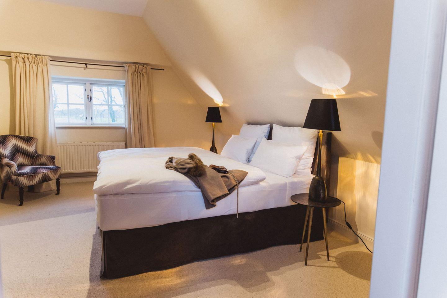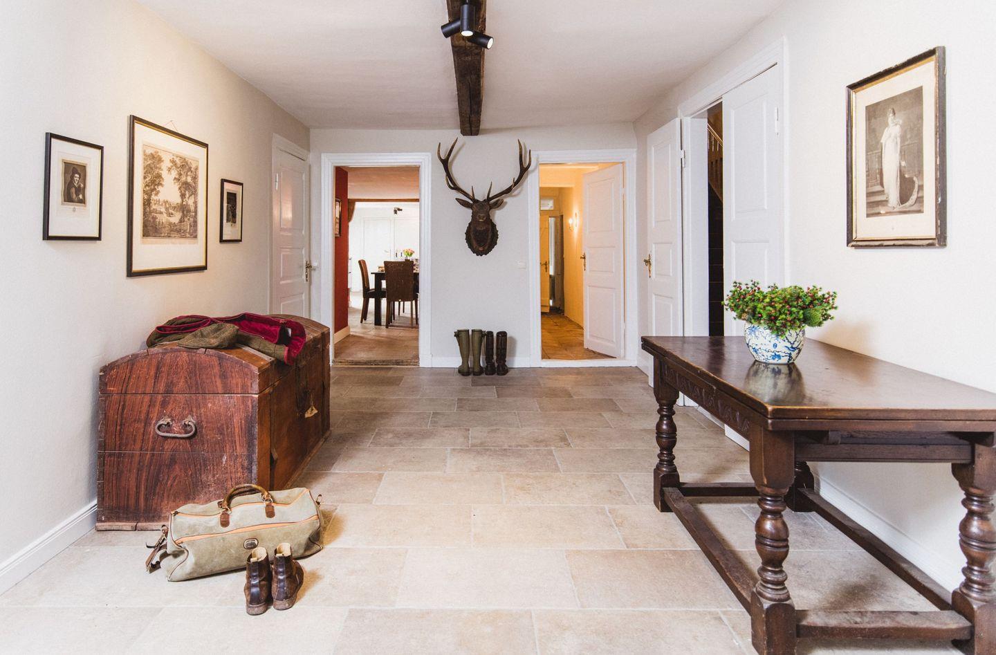 Das Gut Dorotheenthal liegt eingebettet zwischen Feldern und Wiesen nur wenige 100 Meter von der Ostsee entfernt. Der nächste Strand ist fußläufig erreichbar. Das Haus bietet viel Platz und ist dennoch dank seiner geschickten Raumaufteilung und dem großen Kamin urgemütlich. 10 Personen kommen hier überaus komfortabel in Doppelzimmern unter - 16 Personen, wenn alle Schlafplätze ausgenutzt werden. Zwei Schlafzimmer verfügen zusätzlich über ein Ankleidezimmer, in dem jeweils ein Zustellbett, das auf 1,80 ausgezogen werden kann, untergebracht ist. Das große Schlafzimmer unterm Dach verfügt insgesamt über vier Einzelbetten und kann somit als Vierbett-Zimmer genutzt werden. Die Aufteilung eignet sich ideal für Familien mit Kindern. An dem großen Esstisch im Esszimmer finden 12 Personen bequem Platz. Für größere Gruppen ab 12 Personen stellen wir in der Eingangshalle eine lange Tafel zur Verfügung, an der 16 Personen Platz finden. Das Haus besticht durch seine hochwertige Ausstattung: Boxspringbetten, 6-Flammen-Induktionsherd, Großer Doppelkühlschrank mit Gefrierfach, Billardtisch, ein Kamin, feinste Stoffe und Echtholzböden sorgen für eine ganz besondere Atmosphäre. Der größte Luxus ist aber der Platz, den das Gut Dorotheenthal bietet. Hier können alle zusammen