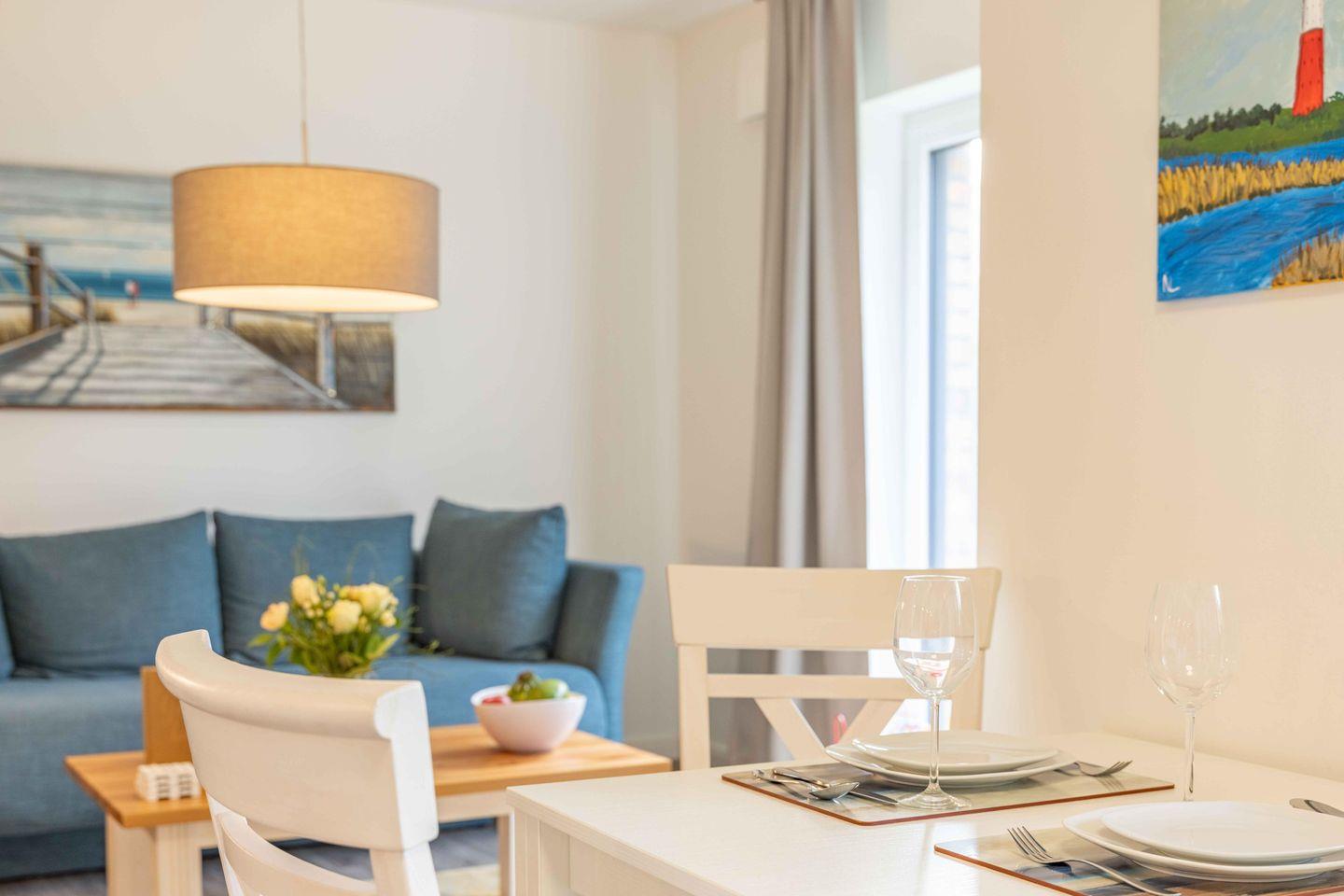 Im Wohnbereich steht Dir ein komfortables Sofa zur Verfügung, welches sich bei Bedarf zu einem dritten Schlafplatz ausziehen lässt. Ein moderner Fernseher mit digitalem Anschluss und Video-on-Demand sorgt für Unterhaltung an gemütlichen Abenden. Fernab der Hektik kannst Du hier in Ruhe die Zeit genießen oder spannende Spieleabende verbringen.