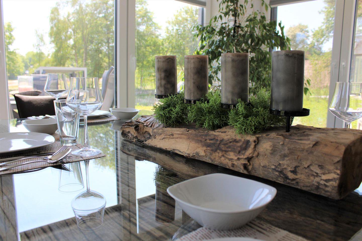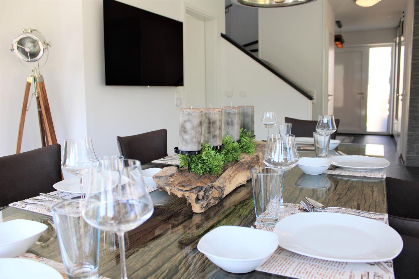 Esstisch, 6 Stühlen, bodentiefer Ausgang zum Garten inkl. Fliegengitter