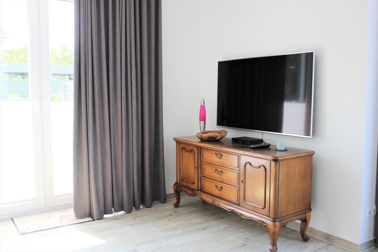 Wohn-Esszimmer: Eckcouch, Flachbildfernseher, Empfang deutschsprachiger TV-Programme (SAT-Anlage), Gaskamin, Fliegengitter Terrassentür