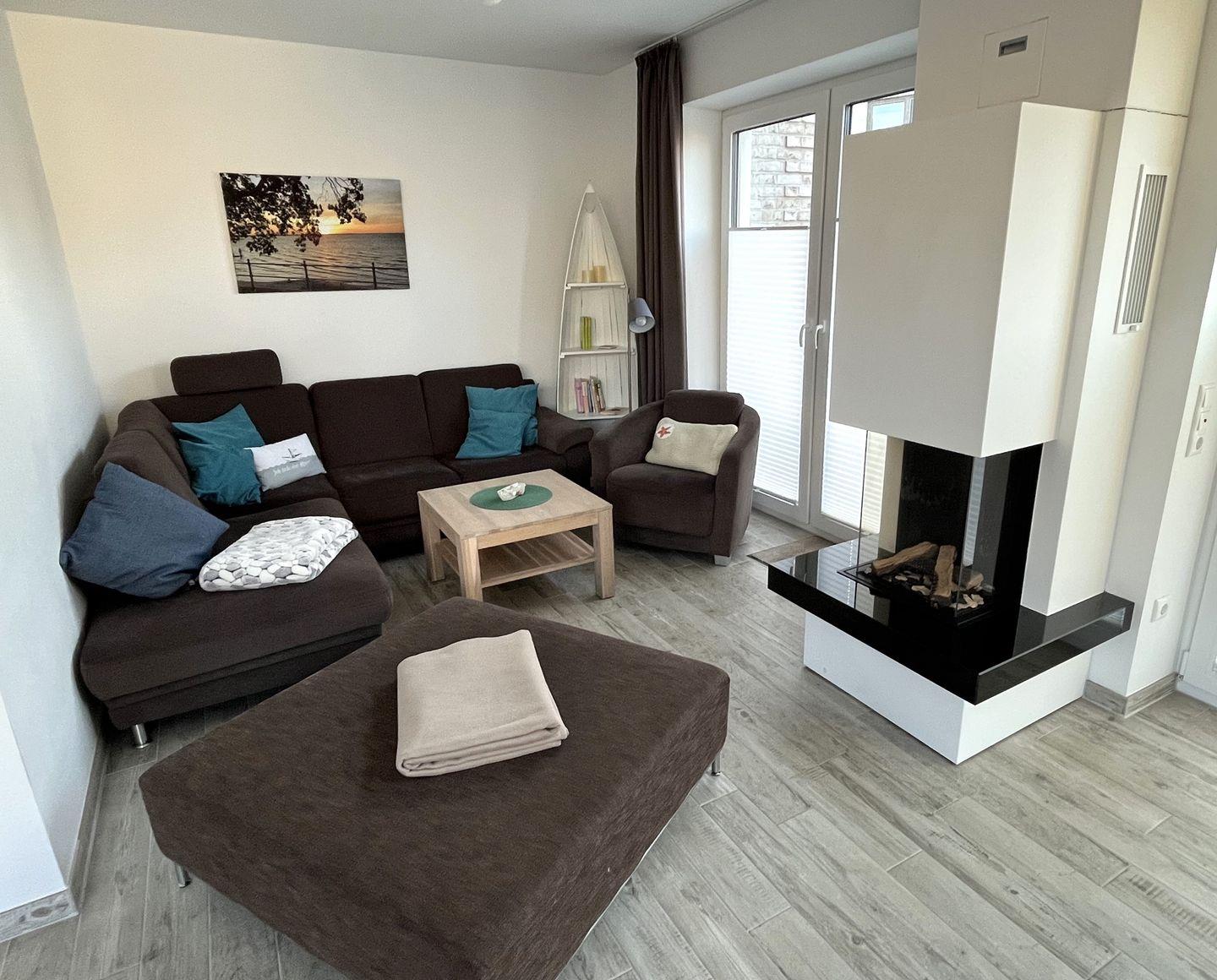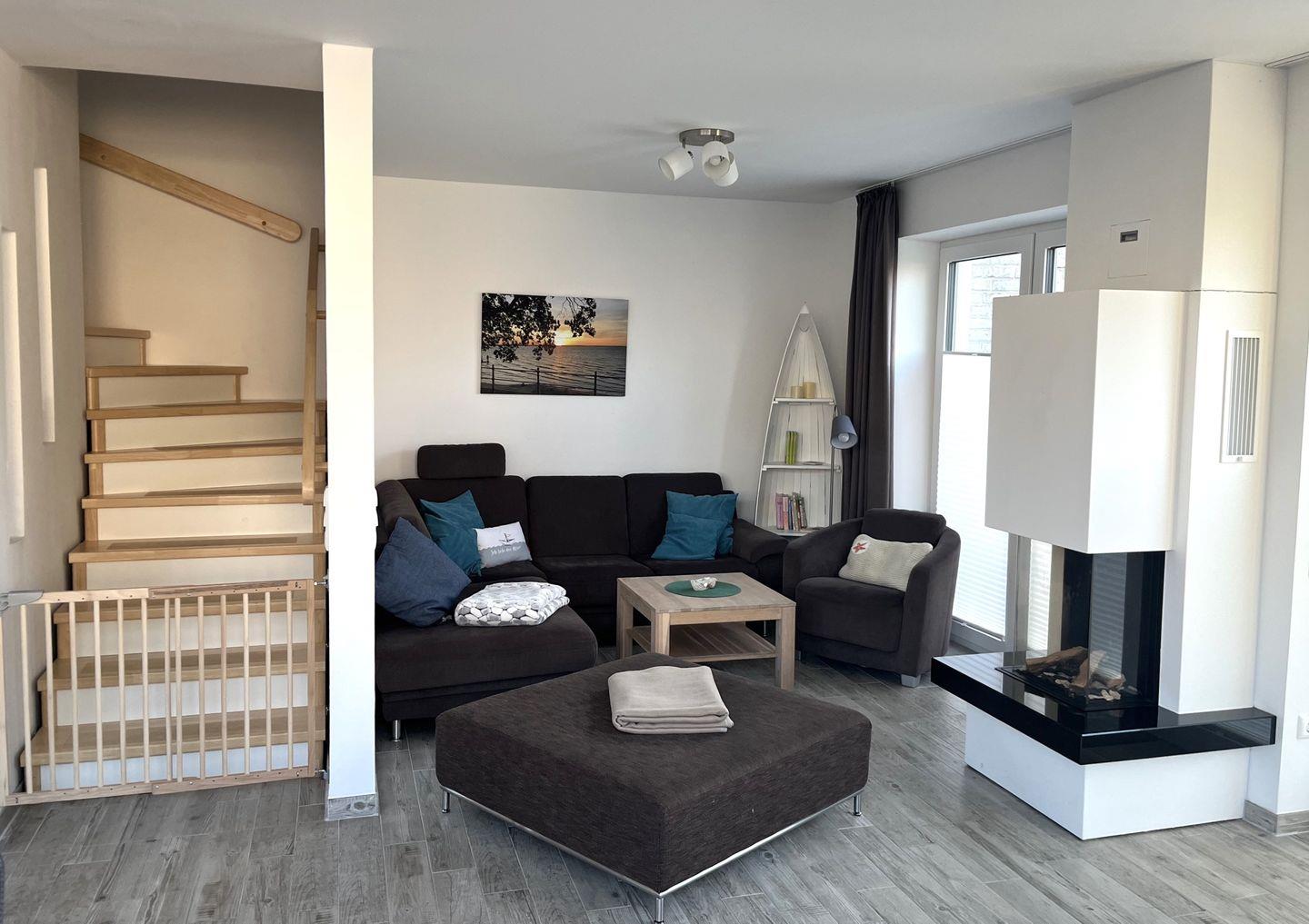 Ein Herzstück des Hauses ist der offene Wohnbereich, der mit einer modernen, voll ausgestatteten Küche, einem komfortablen Essbereich und einer einladenden Sofaecke ausgestattet ist. Hier können Sie gemütliche Abende mit Spielen oder Filmen verbringen. Ein Gaskamin dient als romantische Ergänzung, während die Fußbodenheizung für zusätzliche Gemütlichkeit an kalten Abenden sorgt. WLAN und mehrere Fernseher sorgen dafür, dass Sie auch in der Urlaubszeit mit der Welt verbunden bleiben können.