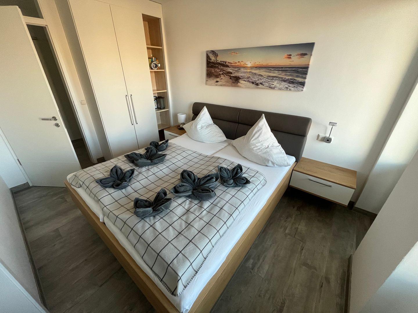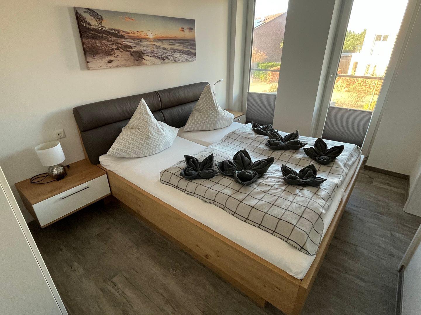 Das Schlafzimmer verfügt über ein komfortables Bett und ist ebenfalls allergikergeeignet. Die modernen Fliesenböden sorgen für ein angenehmes Raumklima. Ein besonderes Highlight des Apartments ist das bodenebene Duschbad, das Ihnen ein luxuriöses Duscherlebnis bietet. Für die kleinen Gäste stehen ein Kinderhochstuhl und ein Babybett bereit, damit sich auch die Jüngsten bei uns wohlfühlen können.