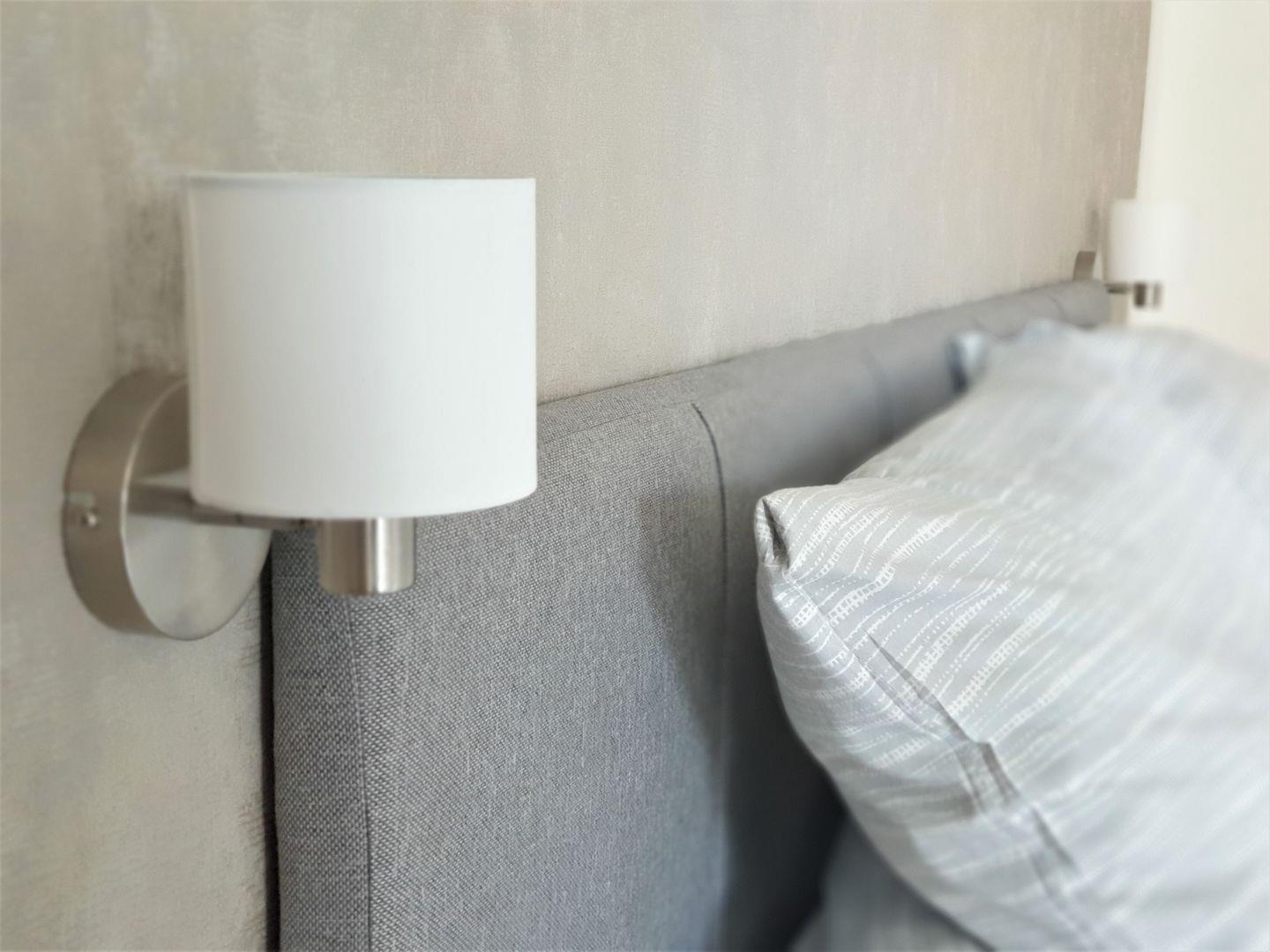 Schlafzimmer: Doppelboxspringbett mit verstellbarem Kopfteil (Maße: 180 x 200 cm), Leselampen, Kleiderschrank, Fernseher Smart TV 43 Zoll