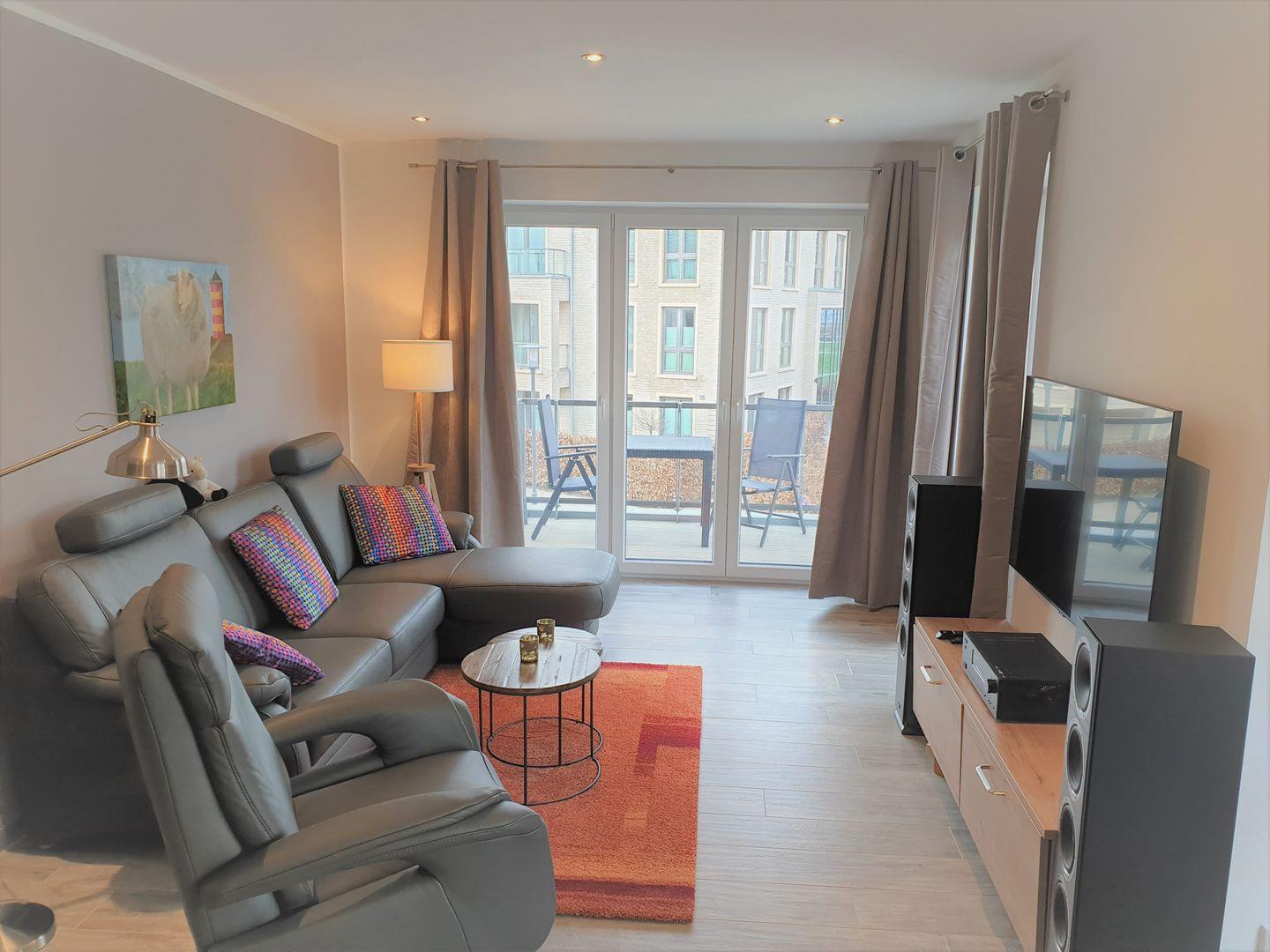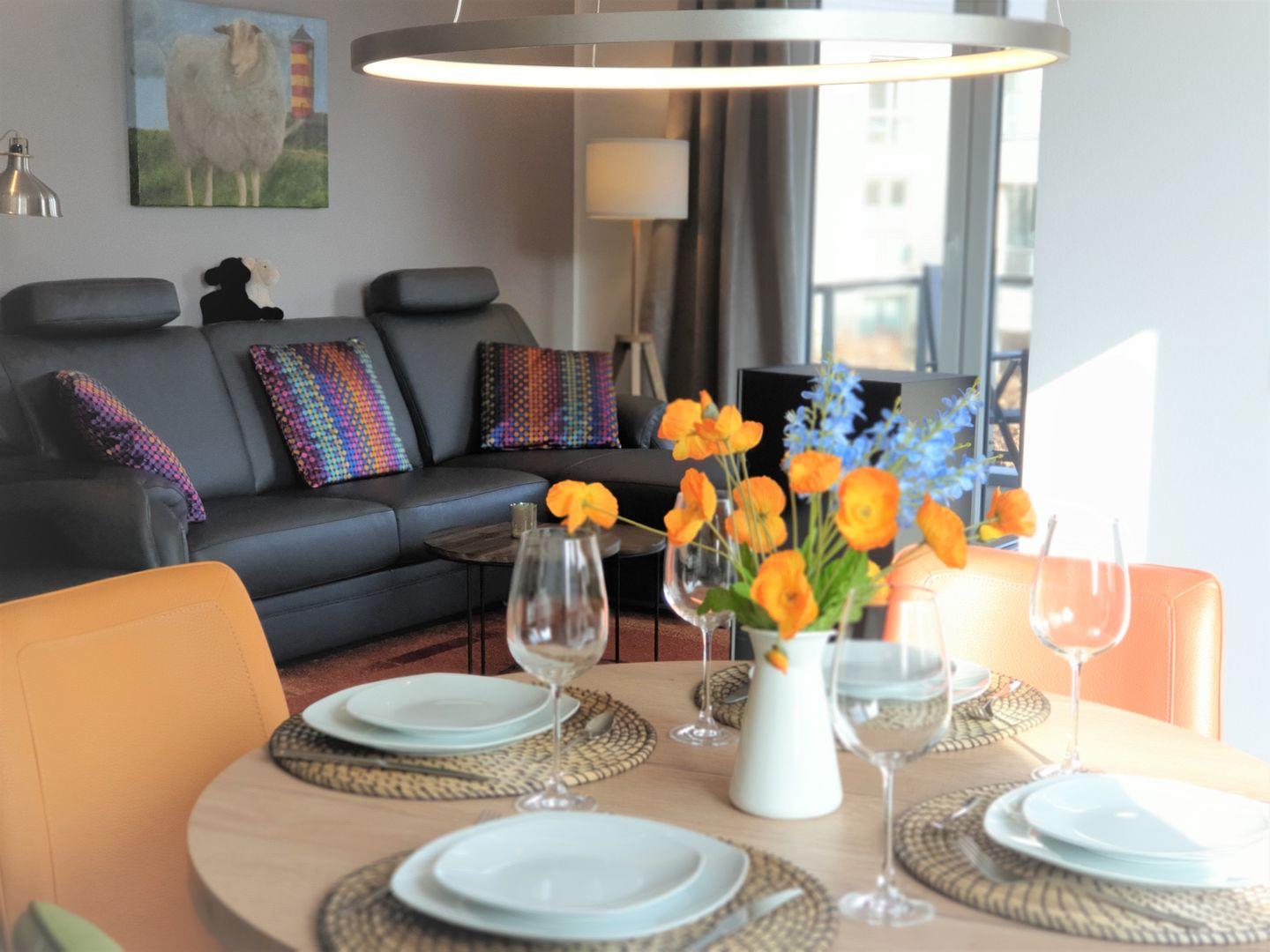 Allgemein: Apartment ca. 56,3 m², 1. Etage, 2 Personen, kostenfreier Pkw-Stellplatz, Fußbodenheizung, WLAN, Nichtraucherwohnung, keine Haustiere