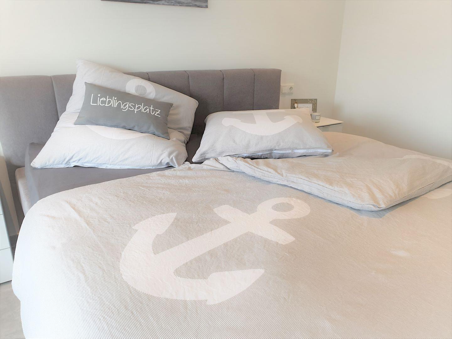 Schlafzimmer: Doppelbett (Maße: 180 x 200 cm), Nachttische, Leselampen, Kleiderschrank, Flachbildfernseher