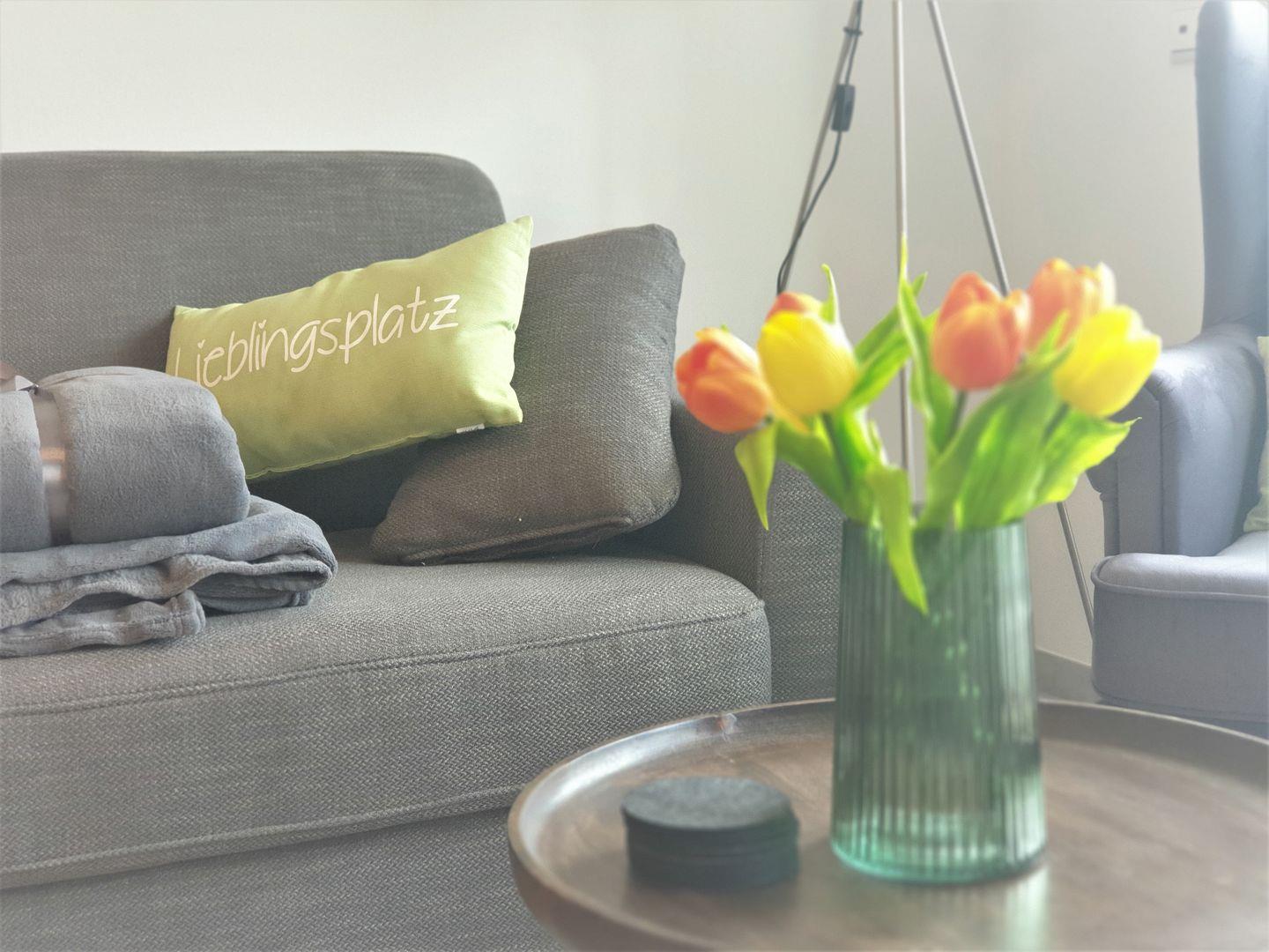 Besonderen Wert wurde auf die Ausstattung gelegt, um einen komfortablen Aufenthalt für alle Gäste zu gewährleisten. Für kalte Tage sorgt die Fußbodenheizung in der gesamten Wohnung, und die zentrale Heizungsanlage sorgt dafür, dass es immer angenehm warm ist. Im Wohnzimmer steht eine bequeme Sofaecke bereit, um entspannende Stunden vor dem Fernseher zu genießen.