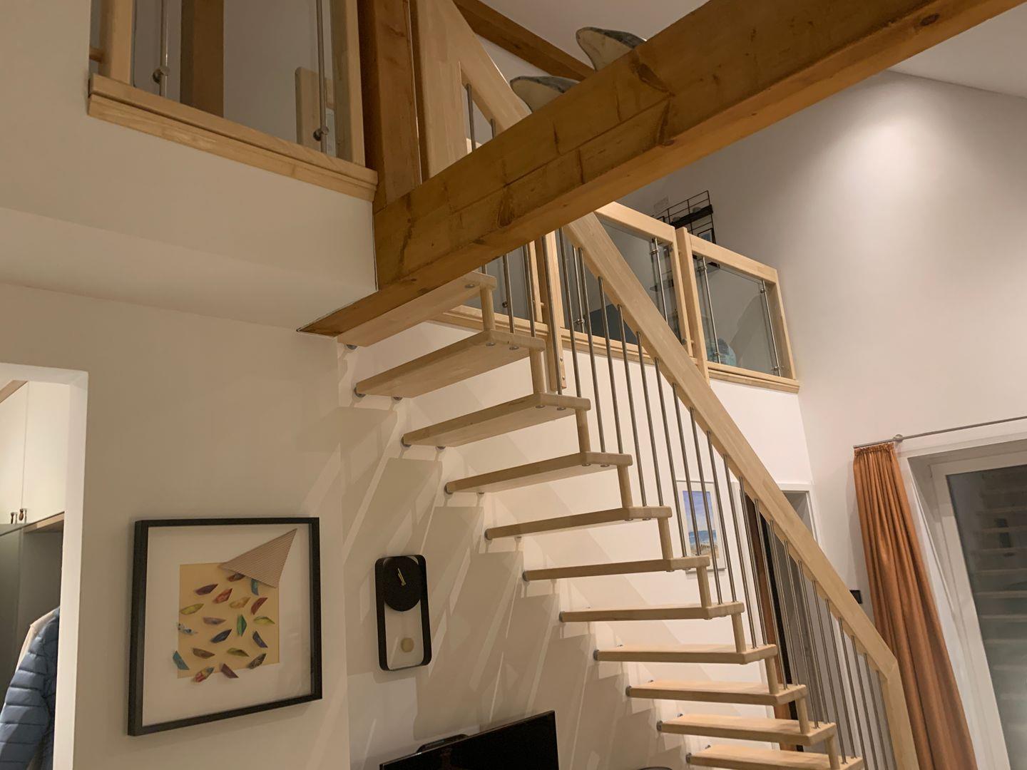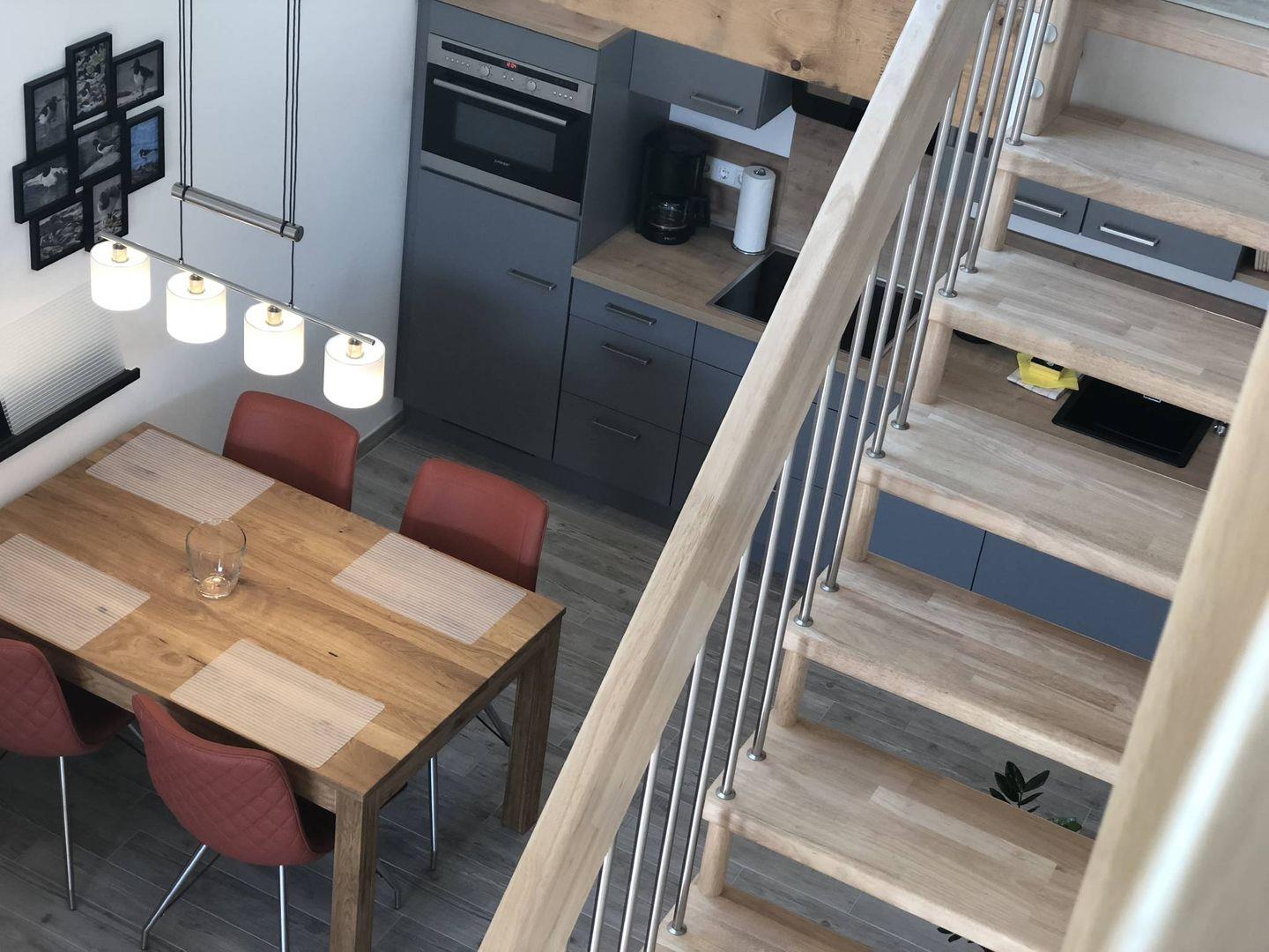 Die Wohnung verfügt über 1 Schlafzimmer im unteren Bereich und den Maisonette Bereich in der oberen Etage, dort können 1-2 KINDER oder 1 Erwachsener (Matratze 1,40m breit) übernachten.