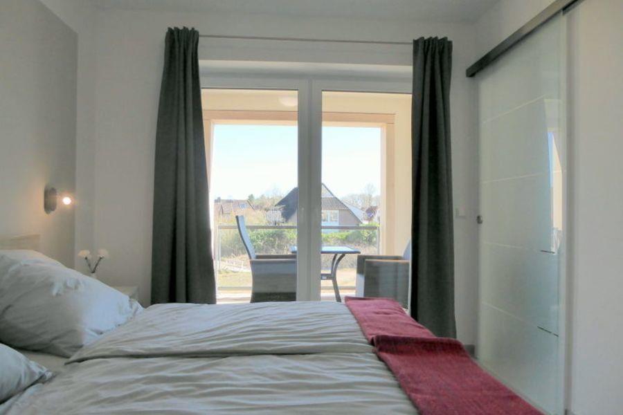 Das Schlafzimmer mit gemütlichem Doppelbett und Flat-TV bietet viel Tageslicht, ist aber schnell und einfach zu verdunkeln dank beschichteter Gardinen