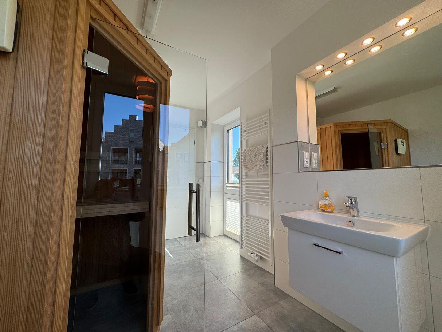 Die Wohnung verfügt über zwei gemütliche Schlafzimmer, in denen Sie nach einem aufregenden Tag am Strand wunderbar zur Ruhe kommen können. Ein weiteres Highlight sind 2 moderne Badezimmer (1davon mit Sauna), dass über eine Dusche und ein WC verfügt.